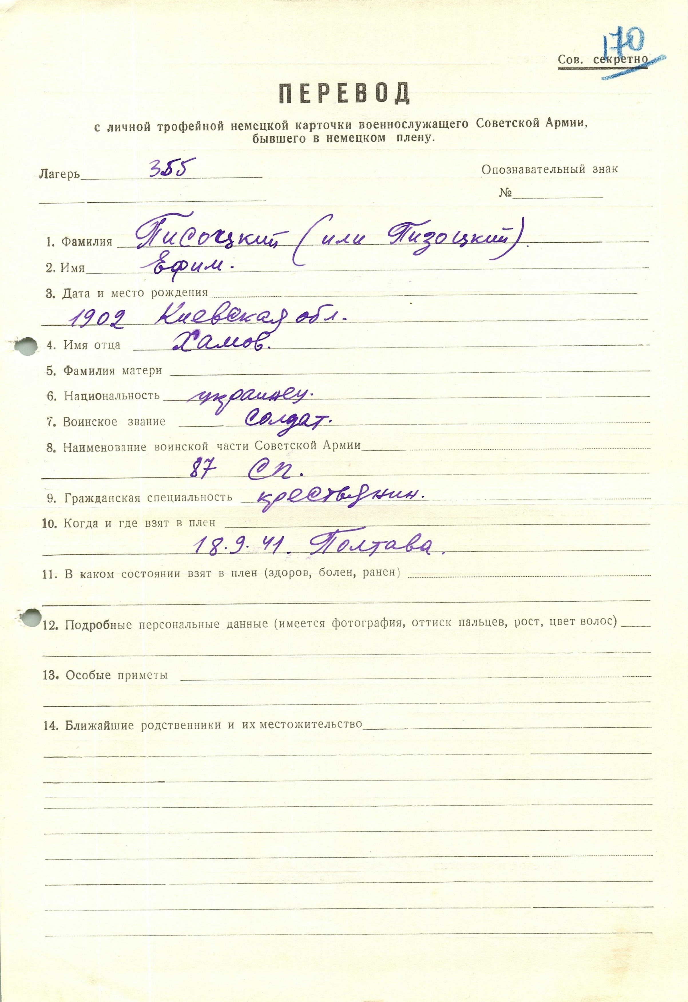 Военнопленные, трофейные карточки. Киевская обл.