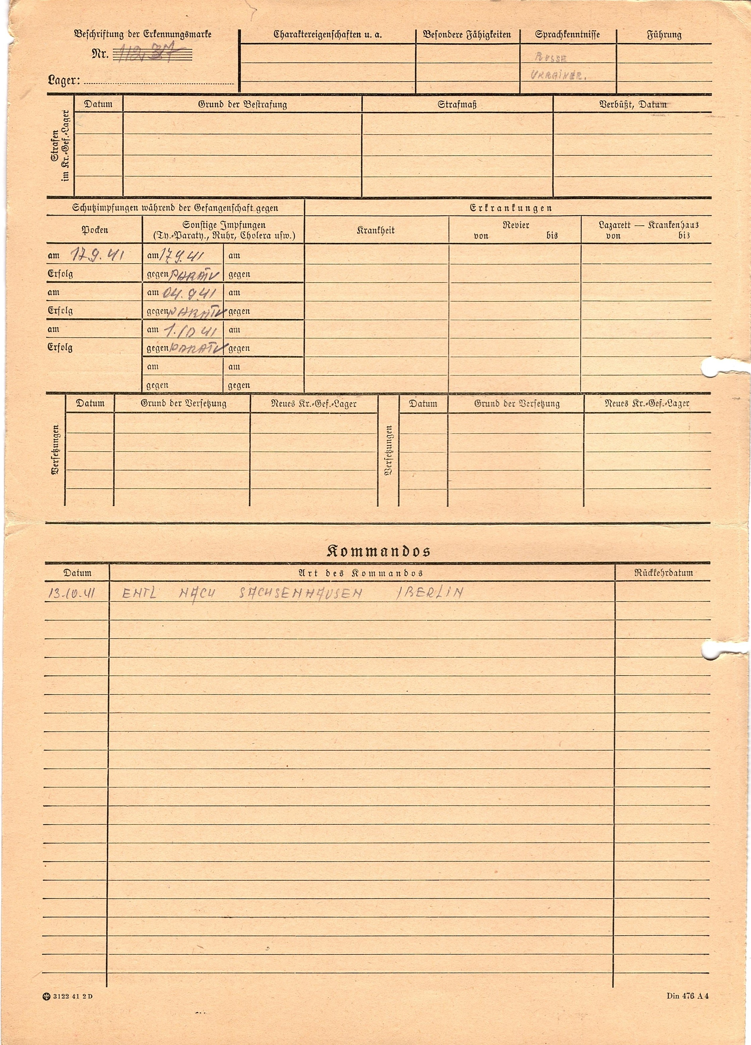 Военнопленные, трофейные карточки. Киевская обл.