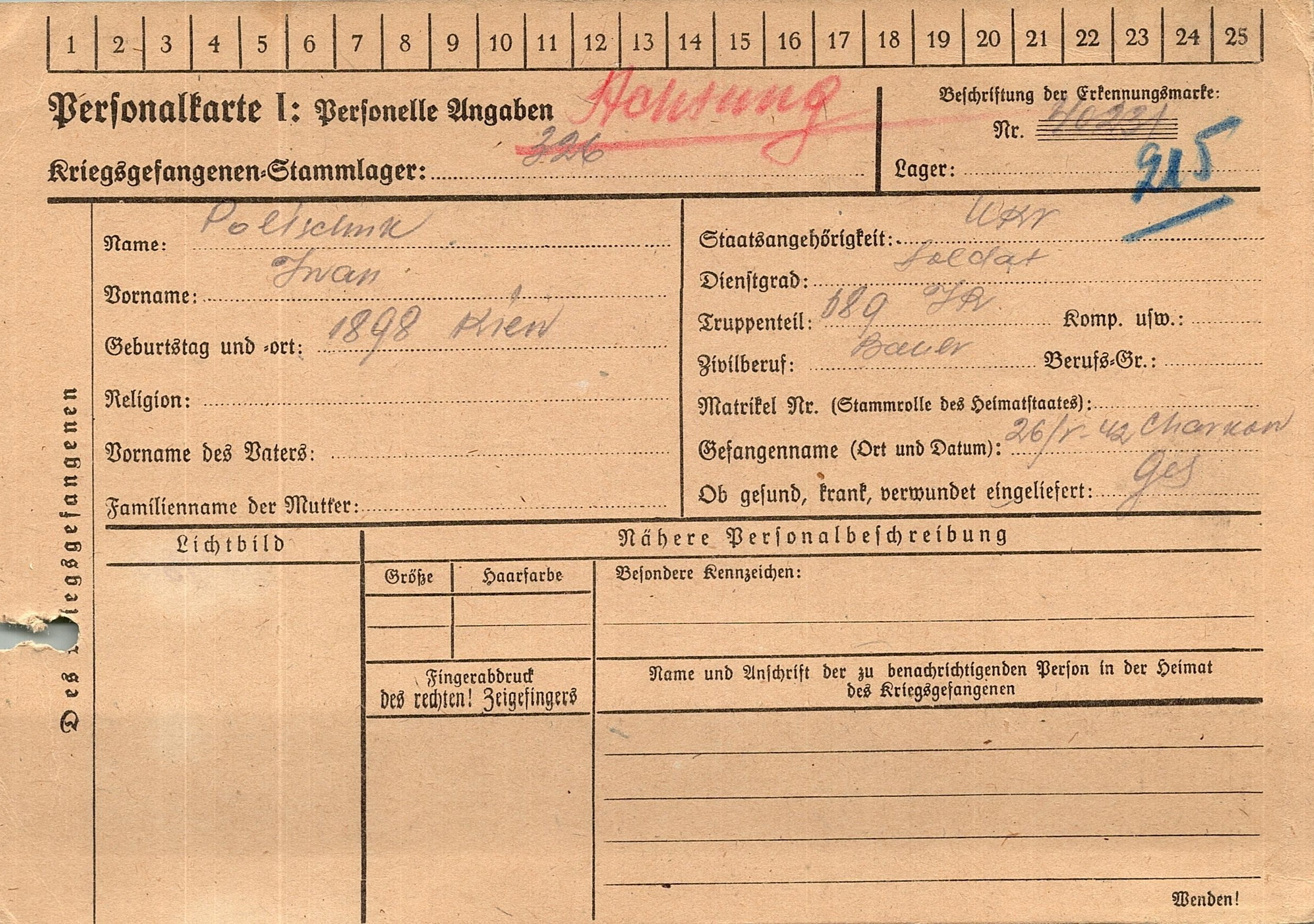 Военнопленные, трофейные карточки. Киевская обл.