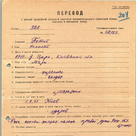 Военнопленные, трофейные карточки. Киевская обл.