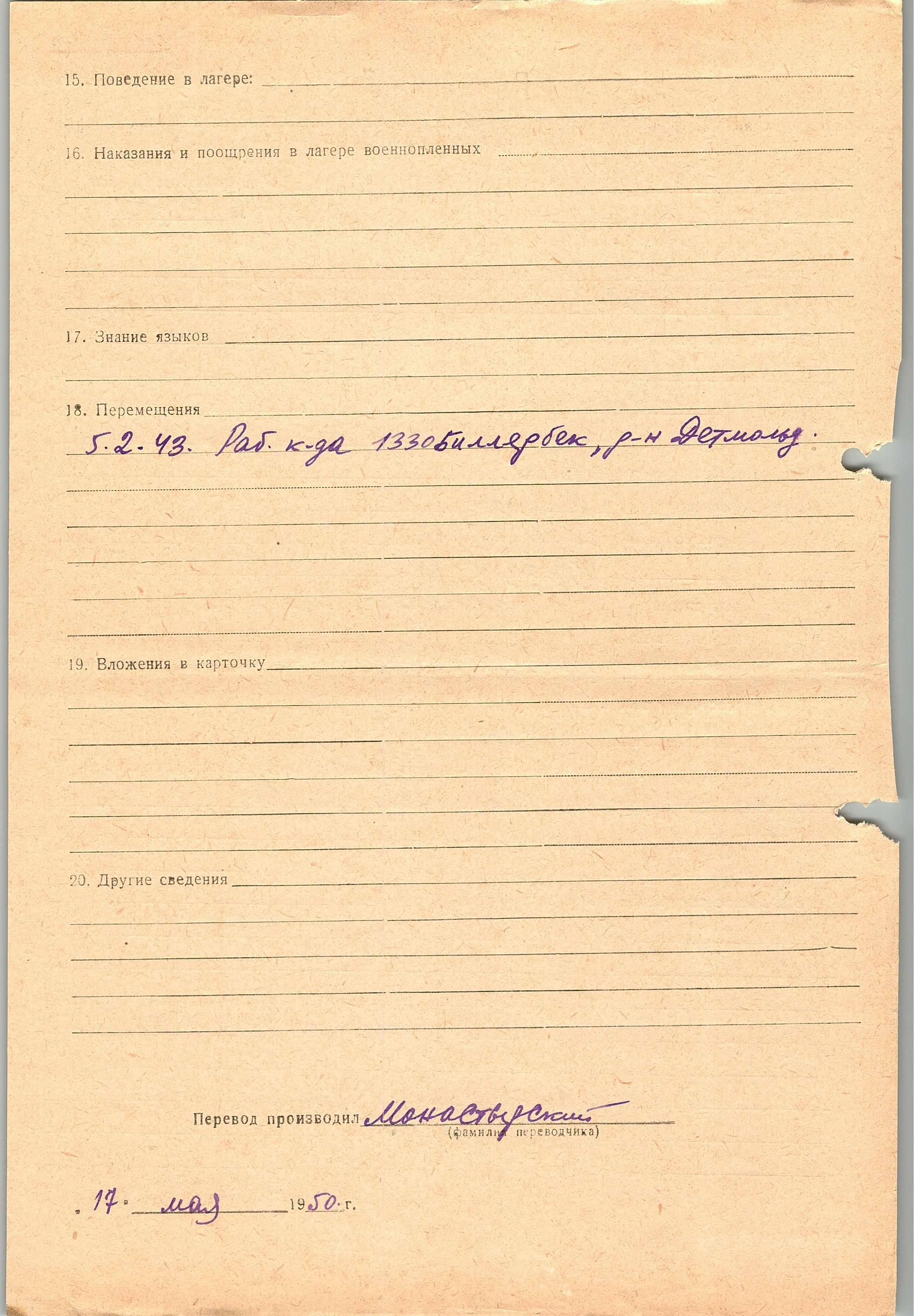 Военнопленные, трофейные карточки. Киевская обл.