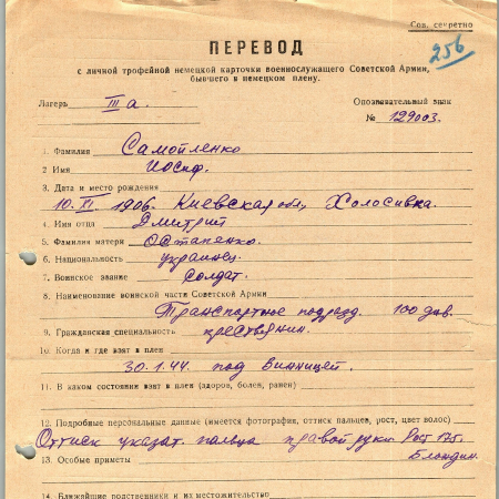 Военнопленные, трофейные карточки. Киевская обл.