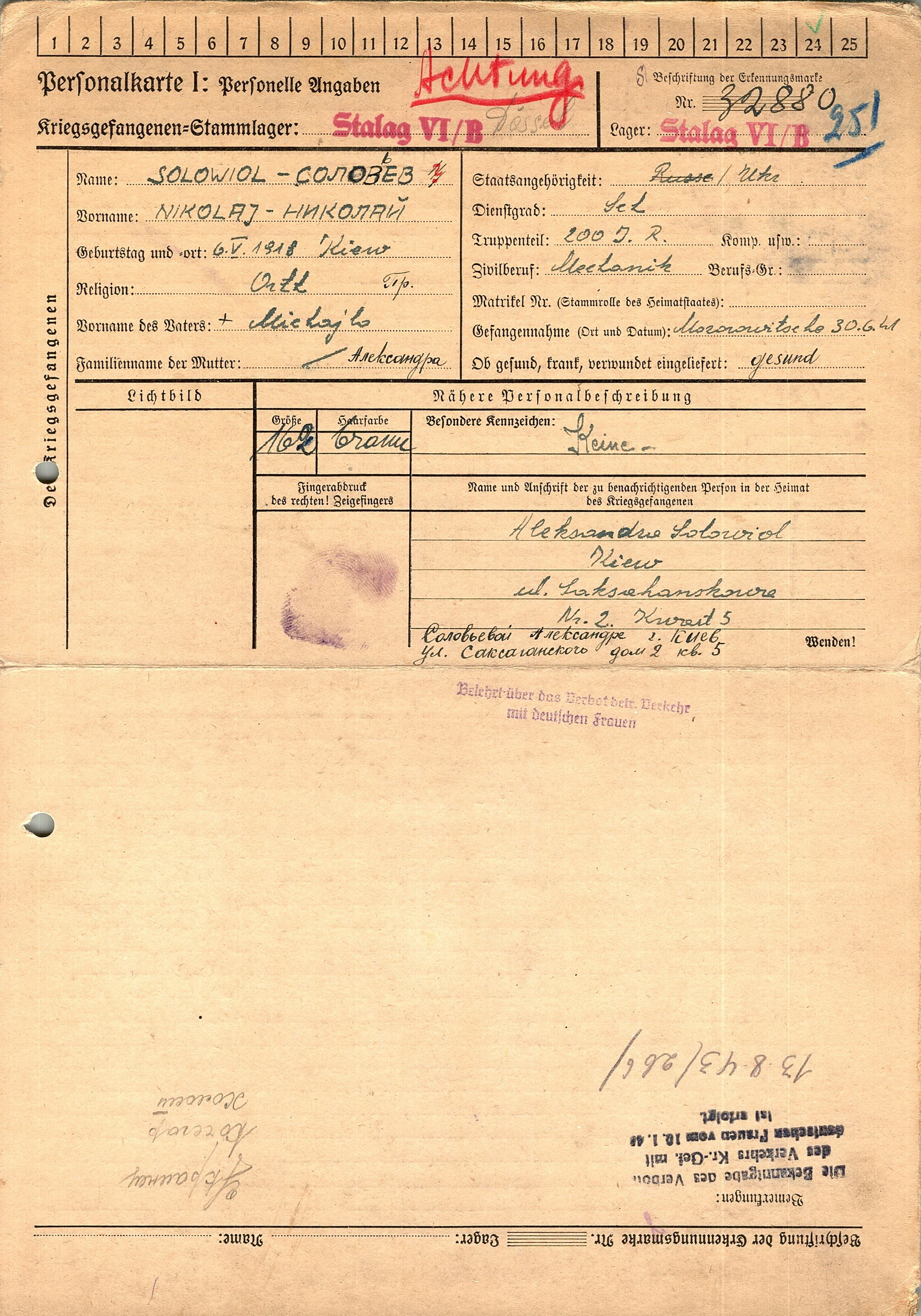 Военнопленные, трофейные карточки. Киевская обл.