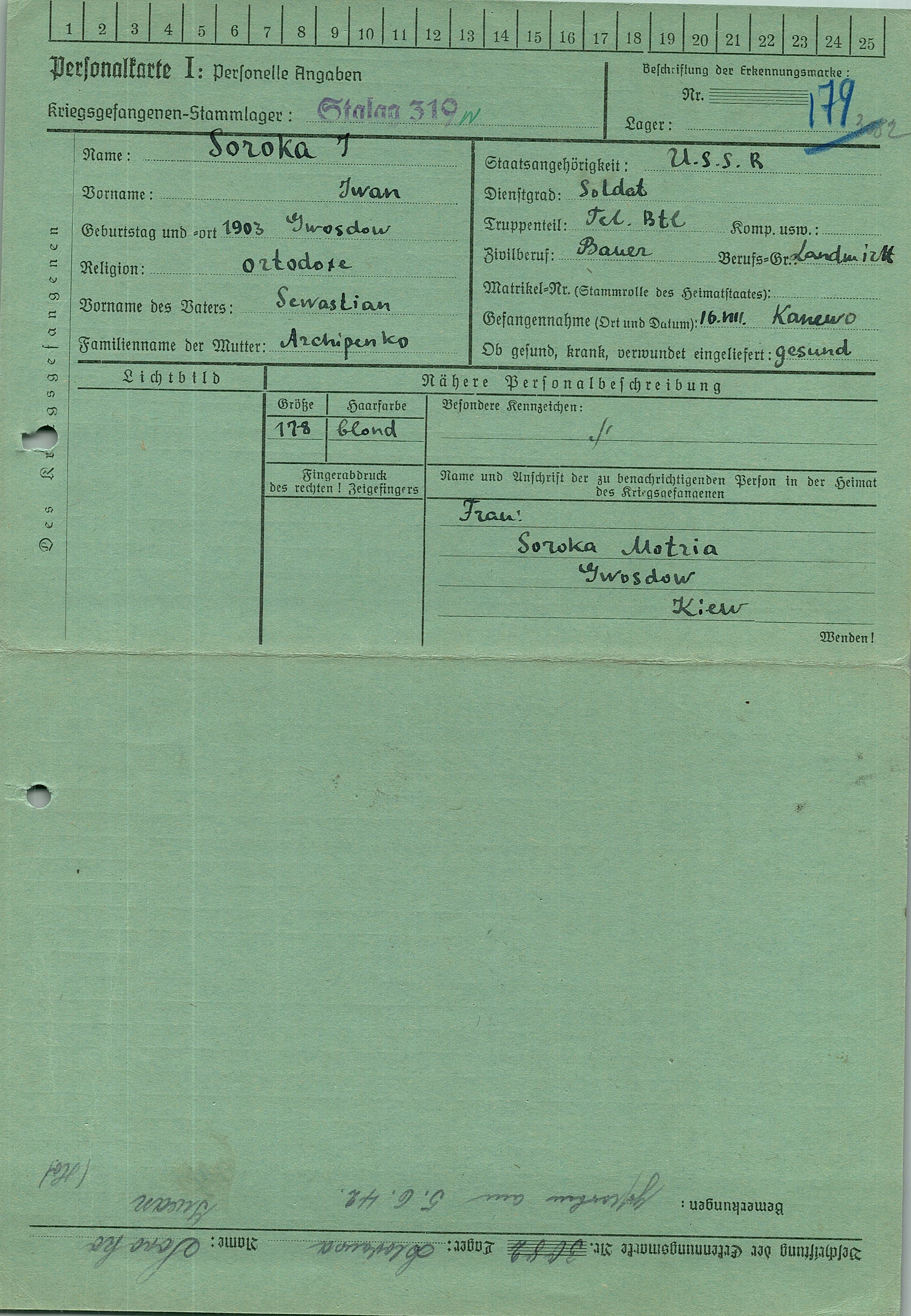 Военнопленные, трофейные карточки. Киевская обл.