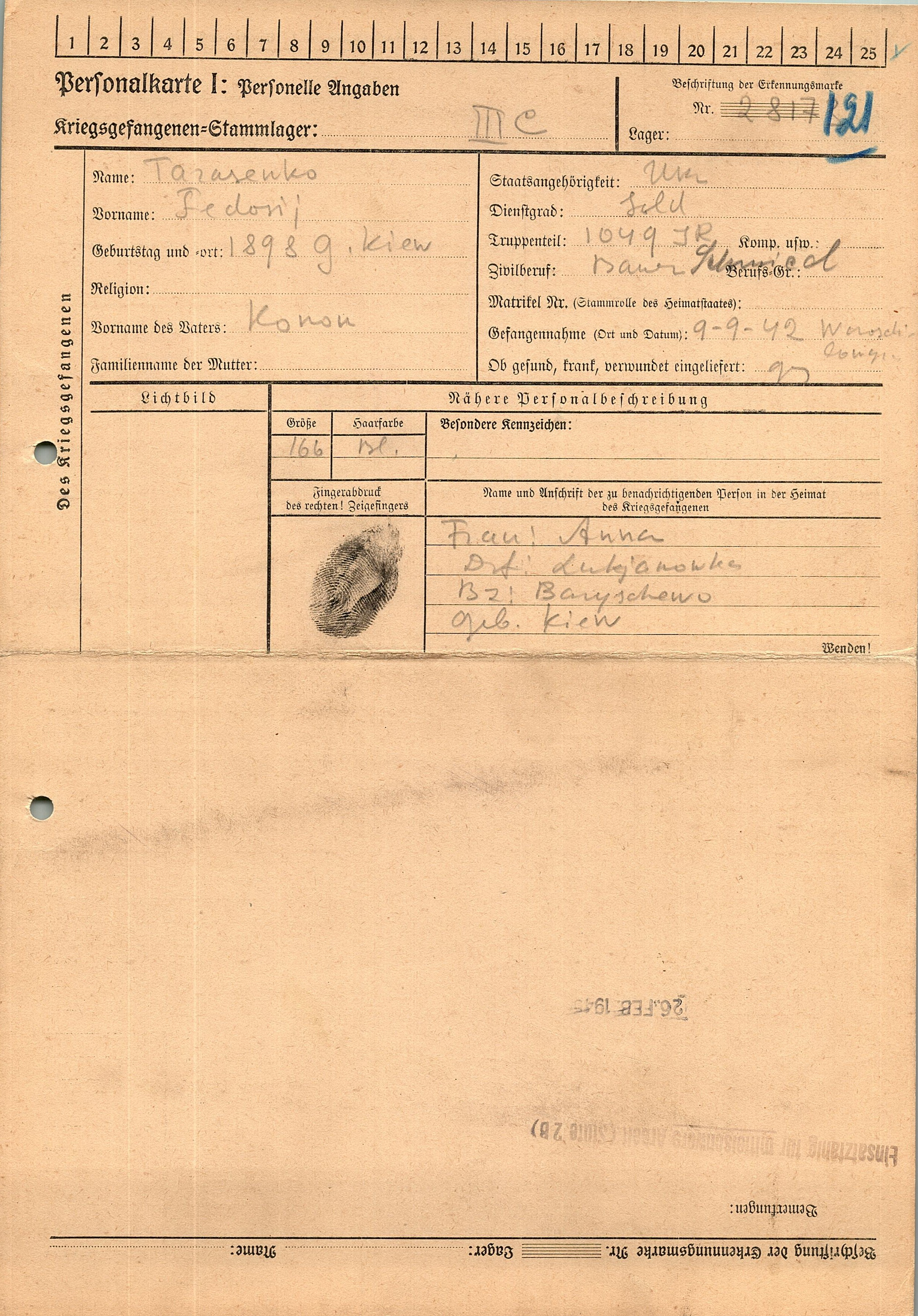 Военнопленные, трофейные карточки. Киевская обл.