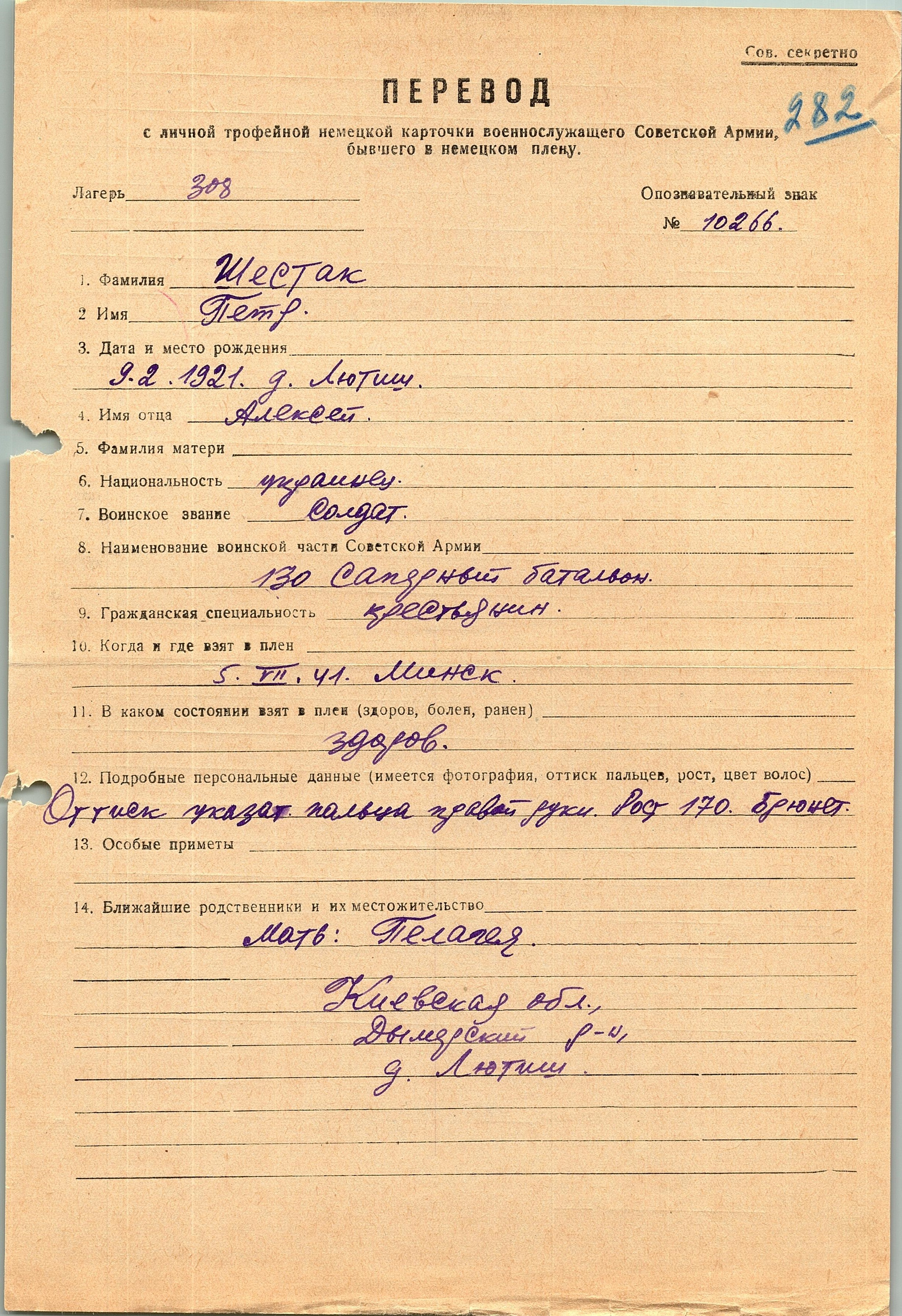 Военнопленные, трофейные карточки. Киевская обл.