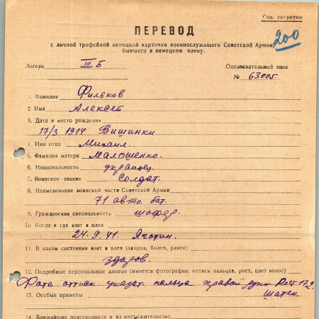 Военнопленные, трофейные карточки. Киевская обл.