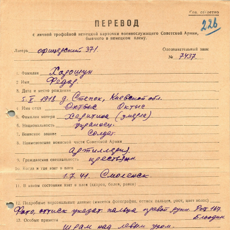 Военнопленные, трофейные карточки. Киевская обл.