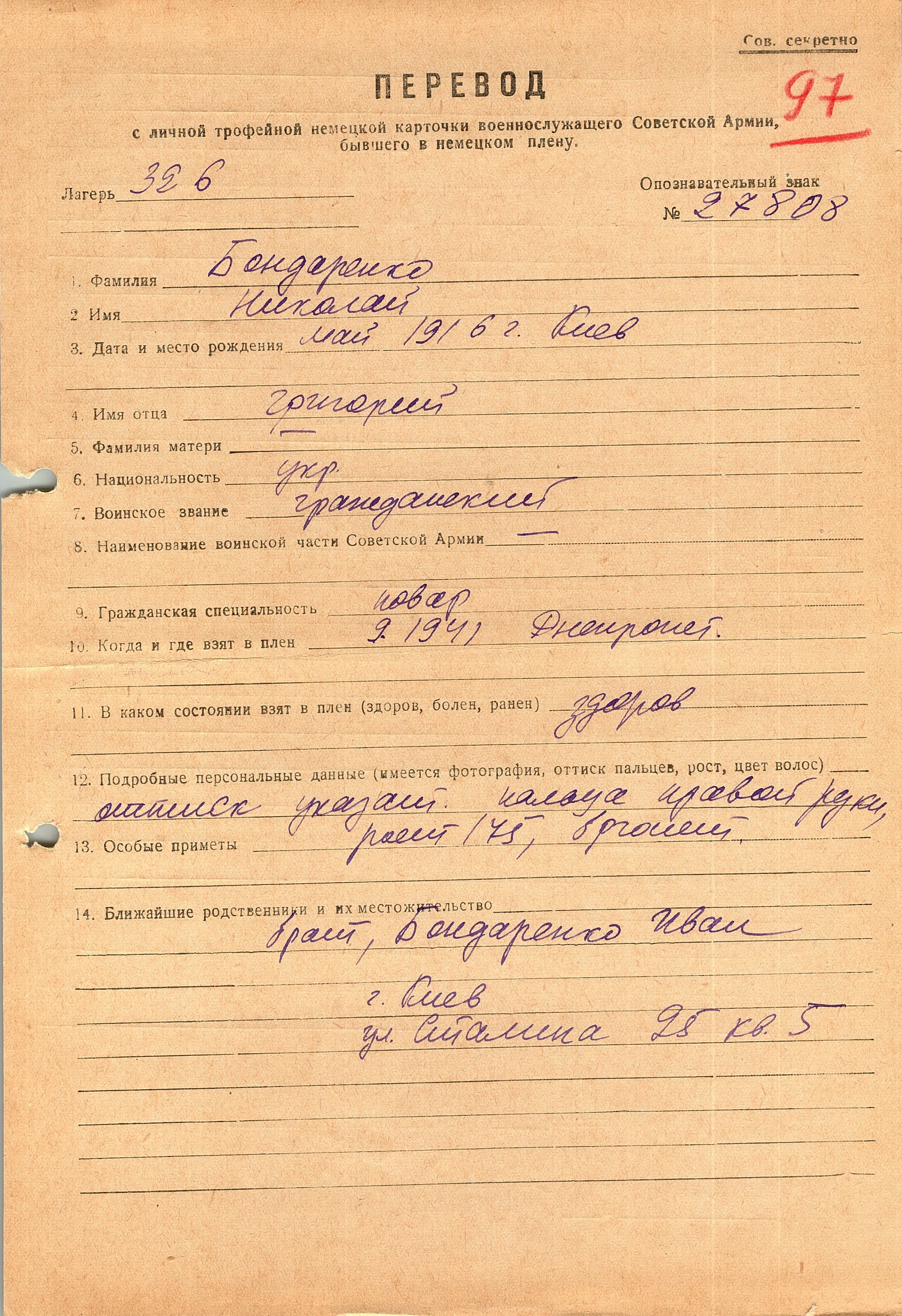 Военнопленные, трофейные карточки. Киевская обл.