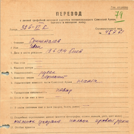 Военнопленные, трофейные карточки. Киевская обл.