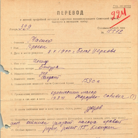Военнопленные, трофейные карточки. Киевская обл.