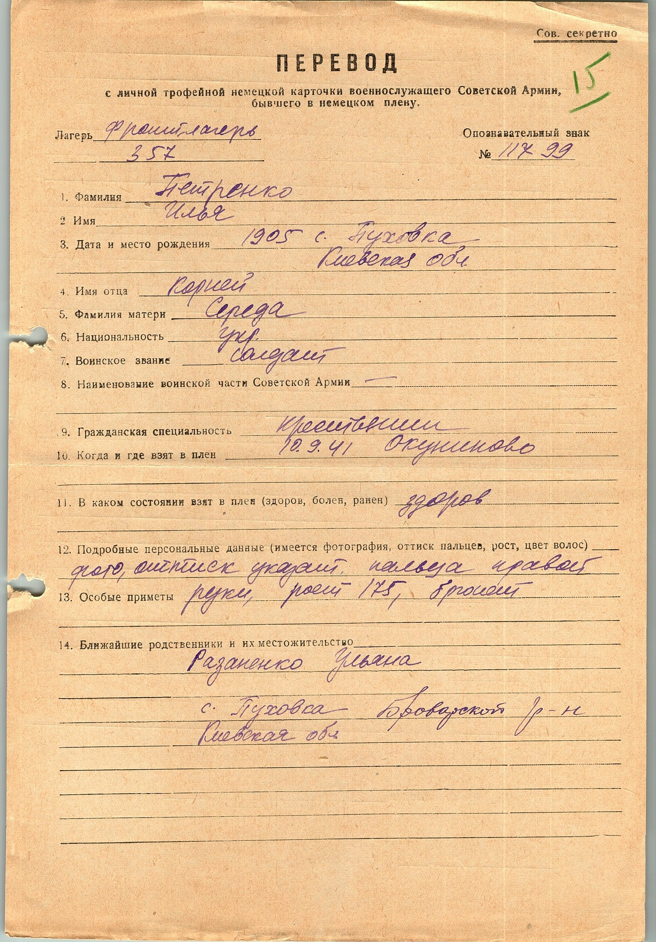 Военнопленные, трофейные карточки. Киевская обл.