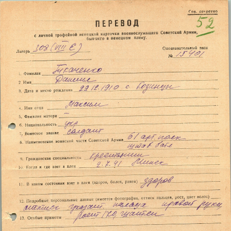 Военнопленные, трофейные карточки. Киевская обл.