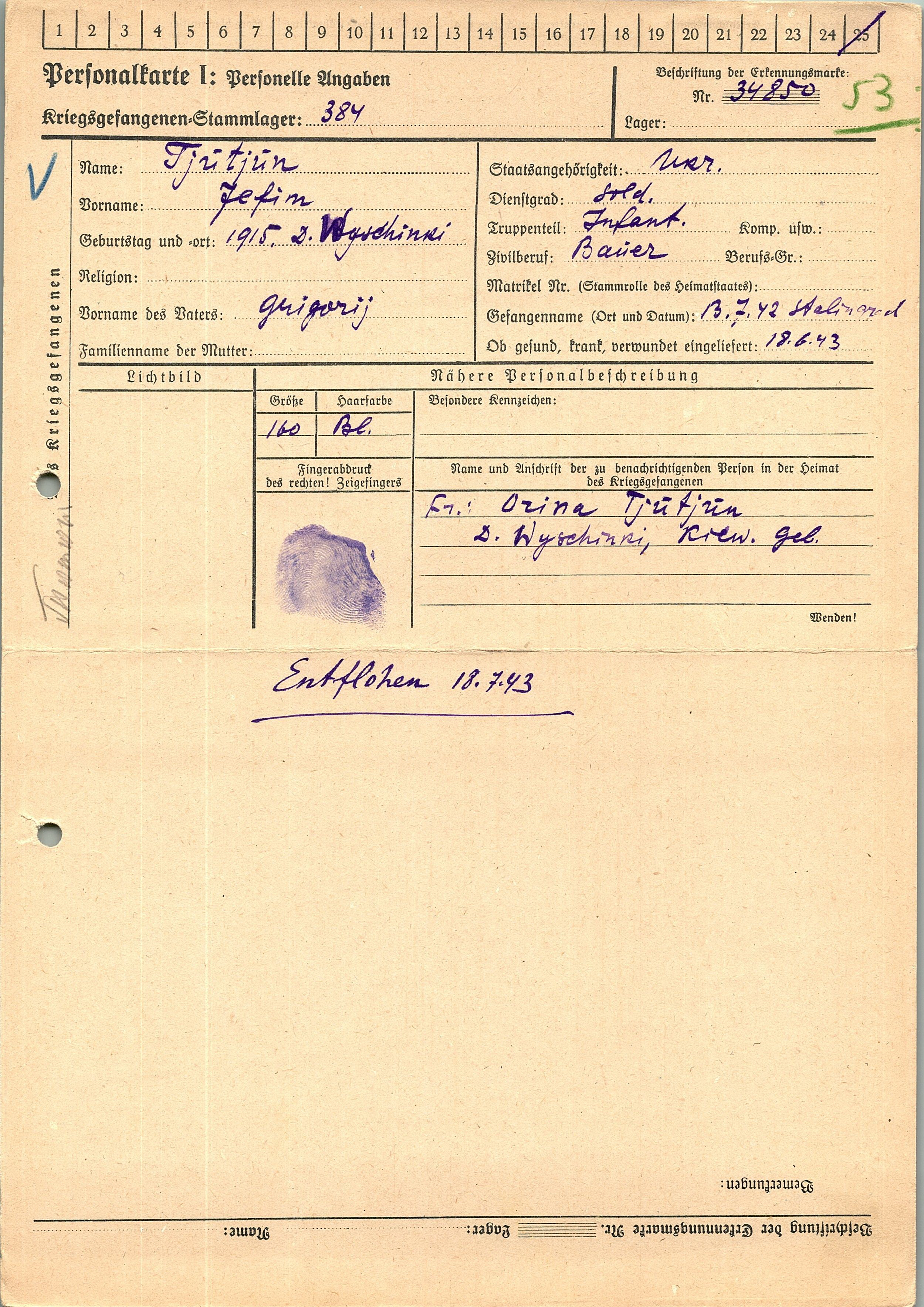 Военнопленные, трофейные карточки. Киевская обл.