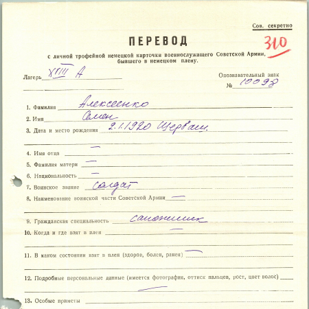 Военнопленные, трофейные карточки. Киевская обл.