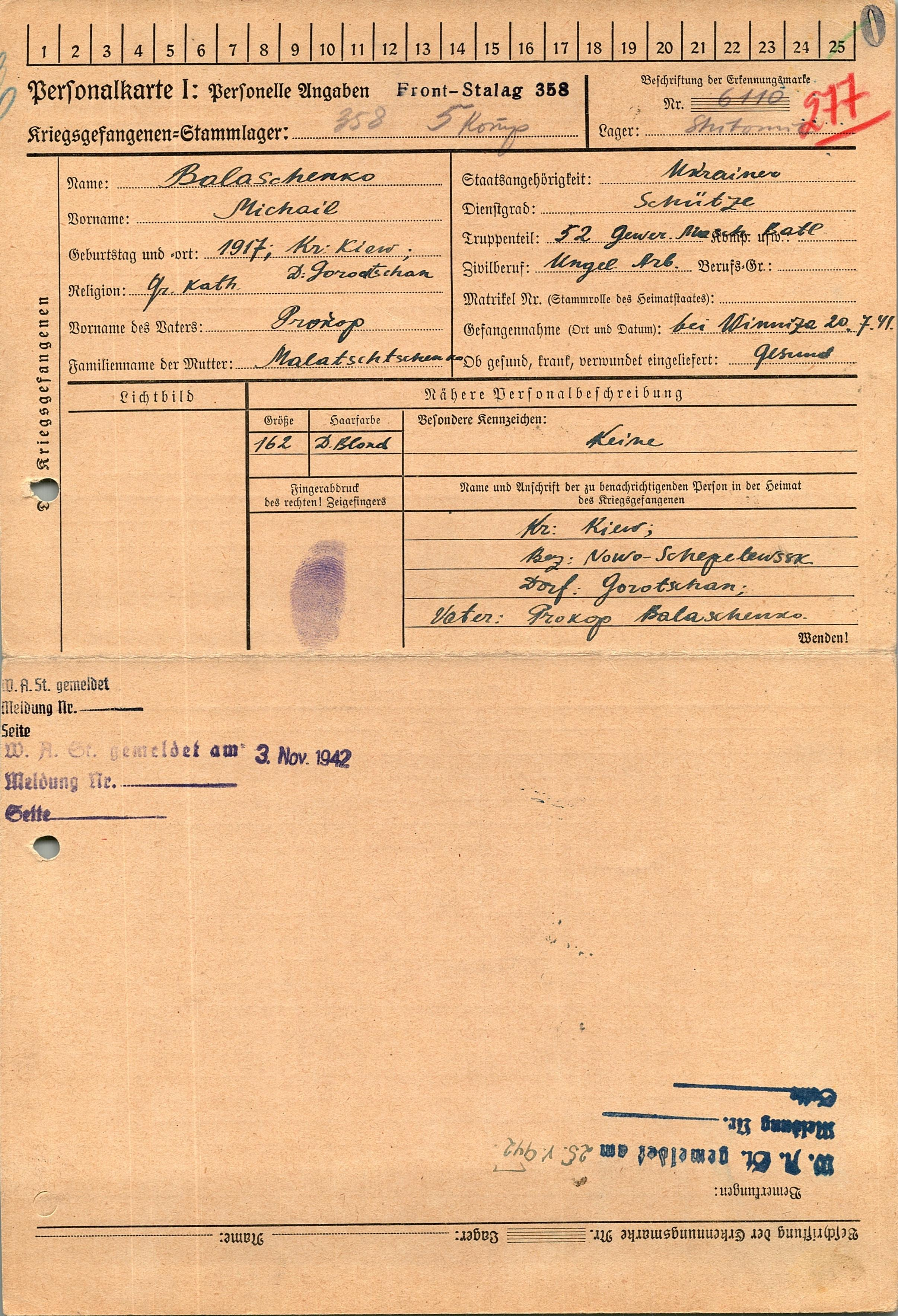 Военнопленные, трофейные карточки. Киевская обл.