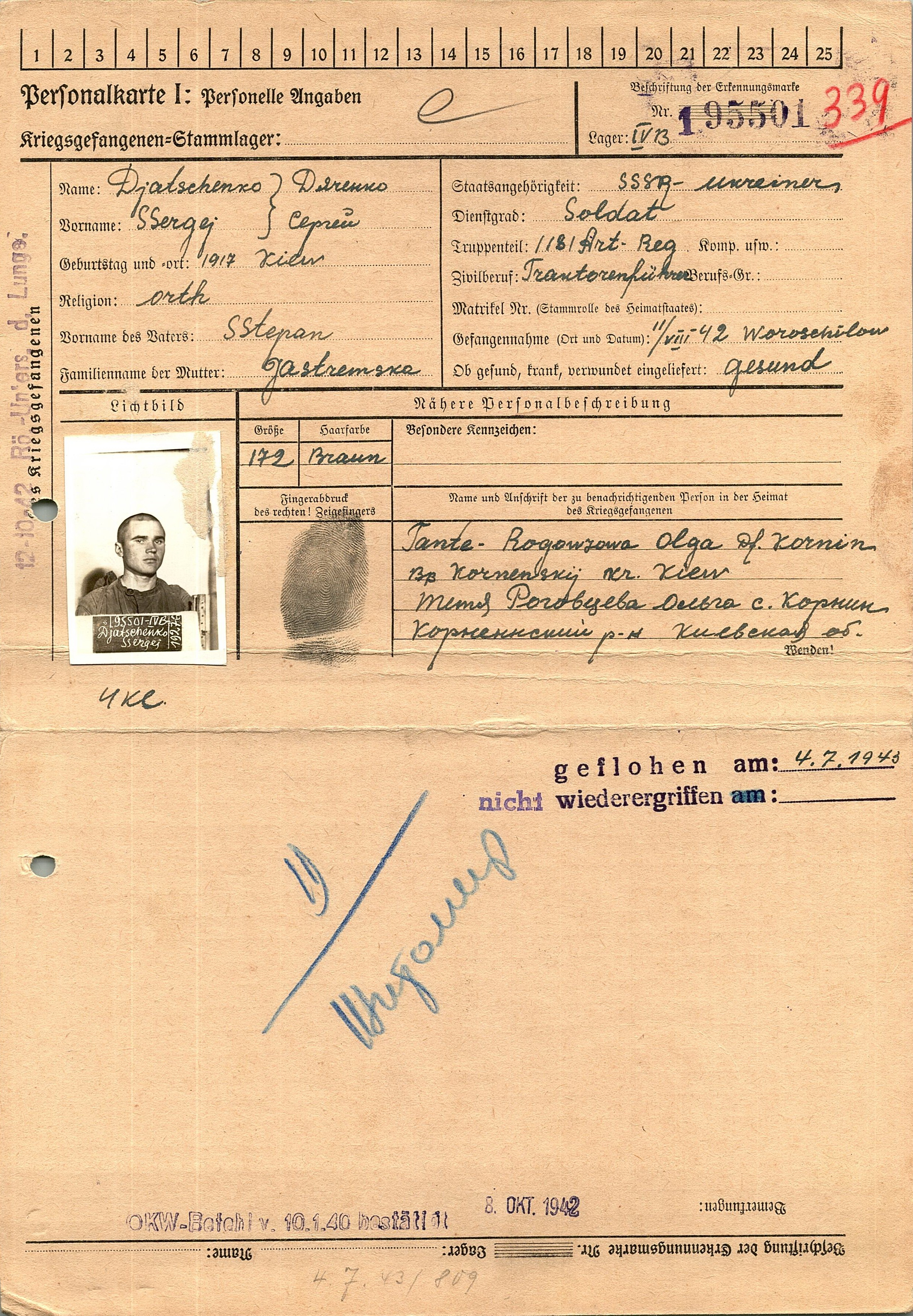 Военнопленные, трофейные карточки. Киевская обл.