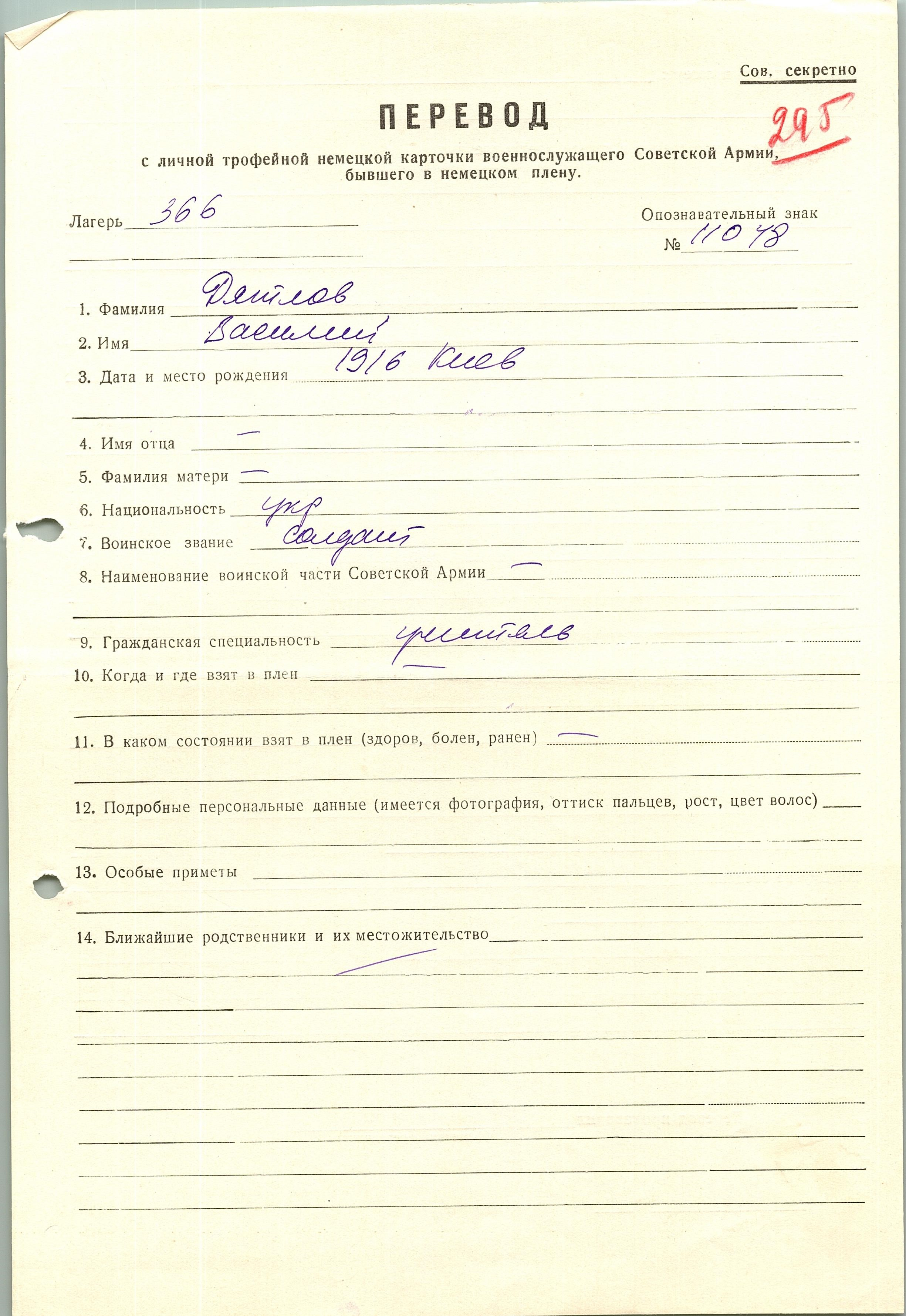 Военнопленные, трофейные карточки. Киевская обл.