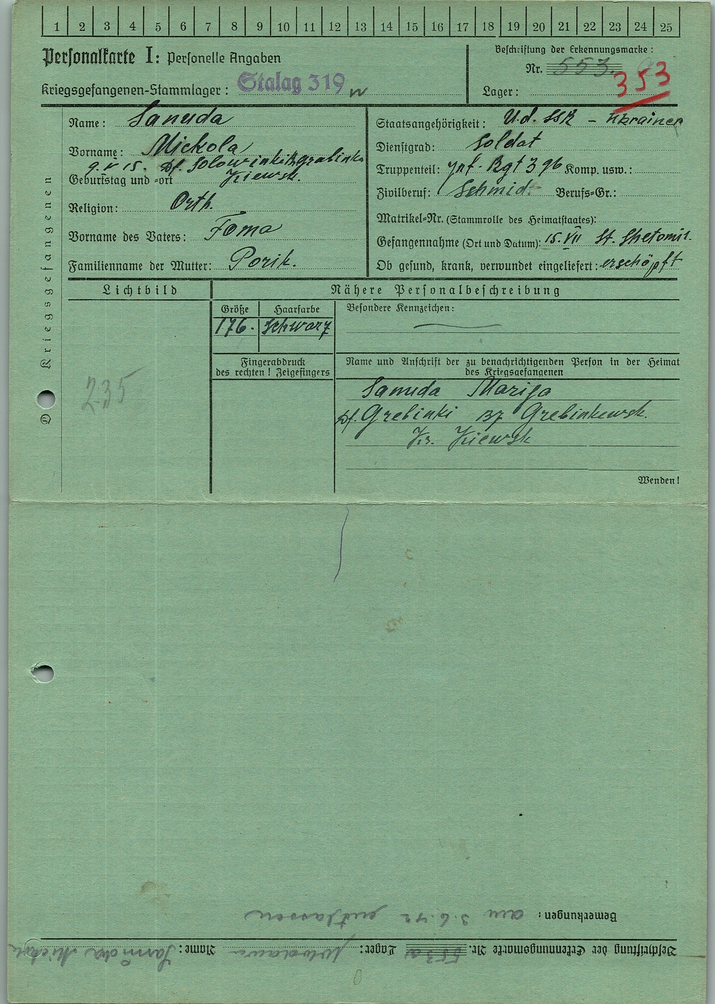 Военнопленные, трофейные карточки. Киевская обл.