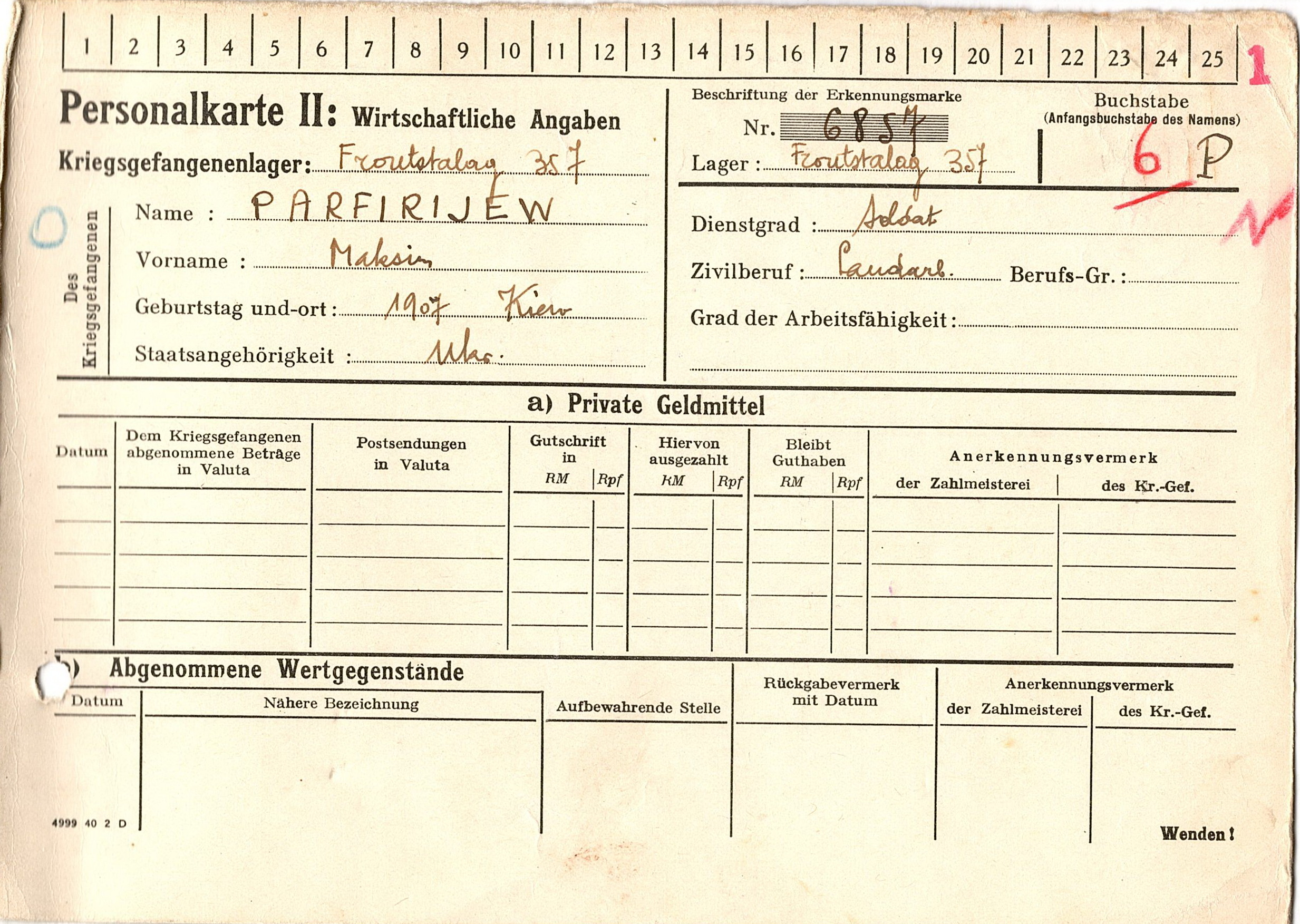 Военнопленные, трофейные карточки. Киевская обл.