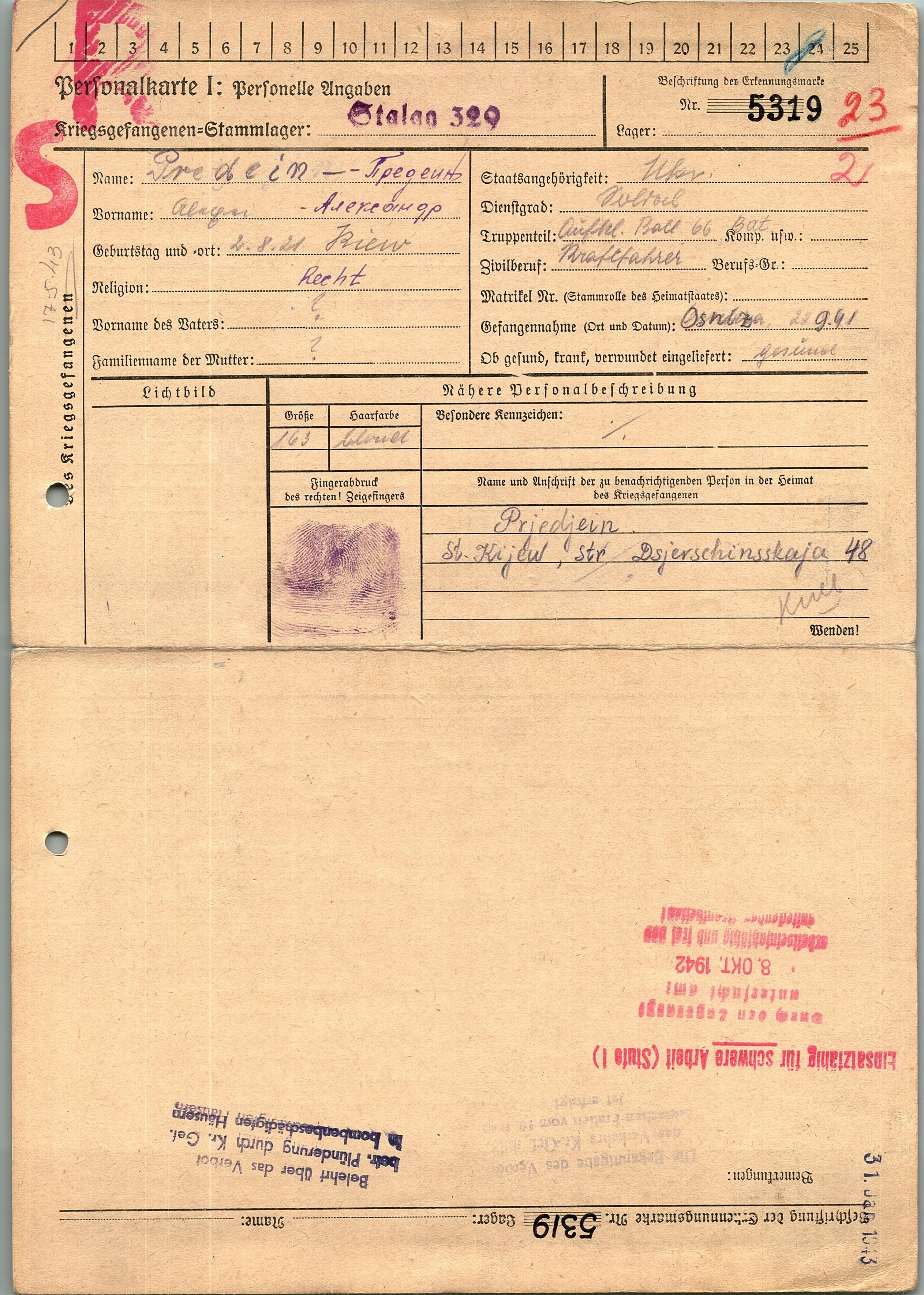 Военнопленные, трофейные карточки. Киевская обл.