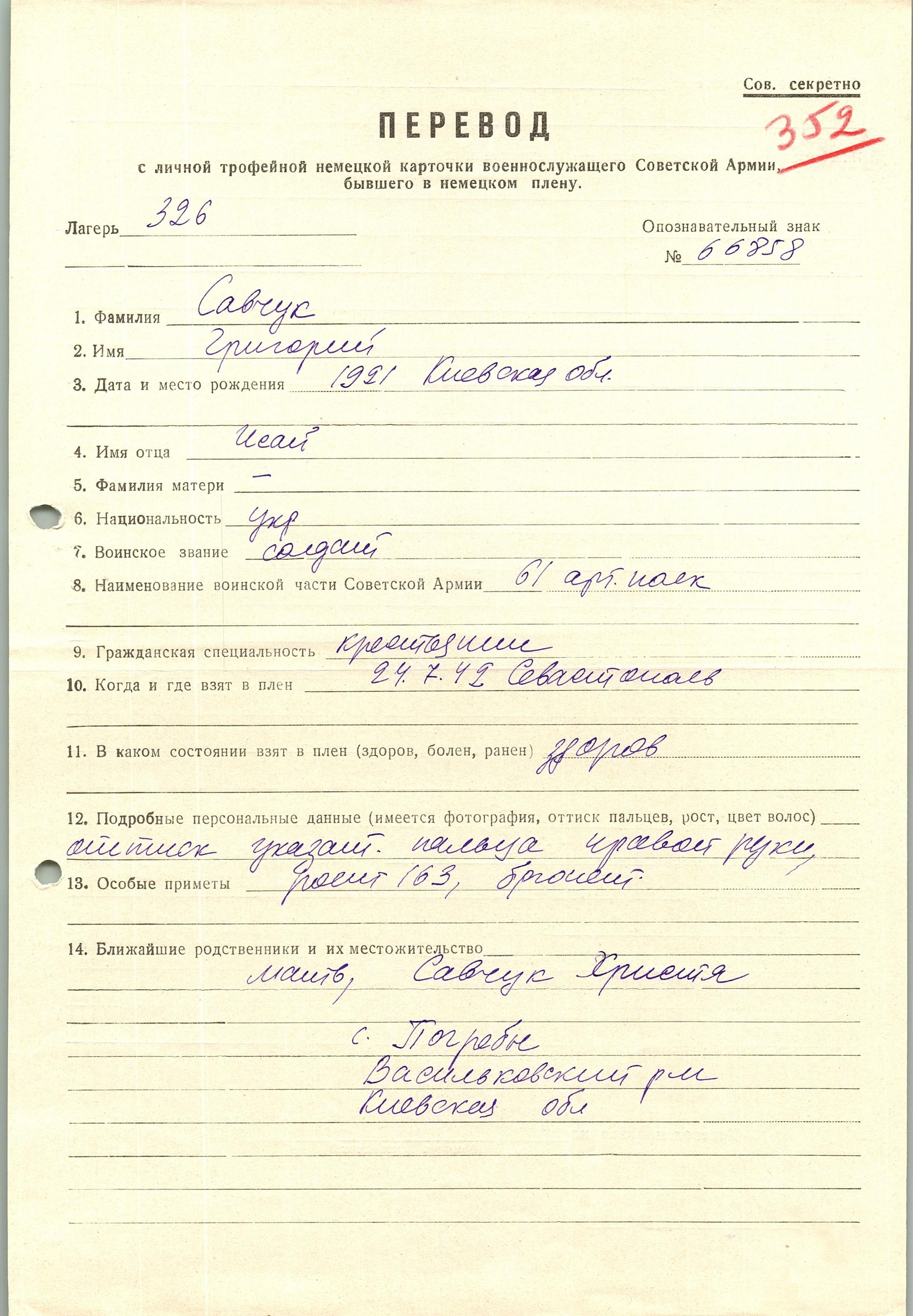 Военнопленные, трофейные карточки. Киевская обл.