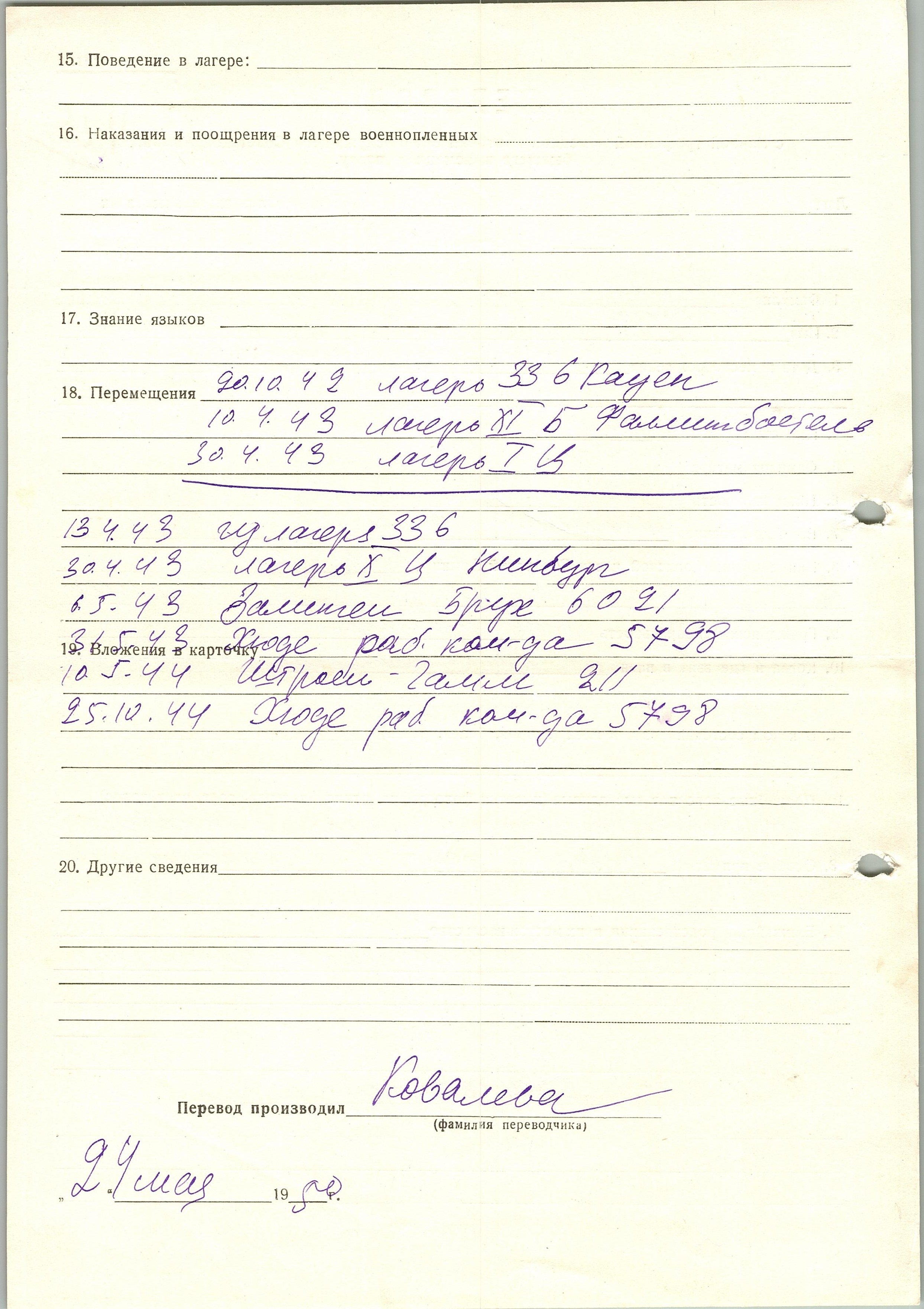 Военнопленные, трофейные карточки. Киевская обл.