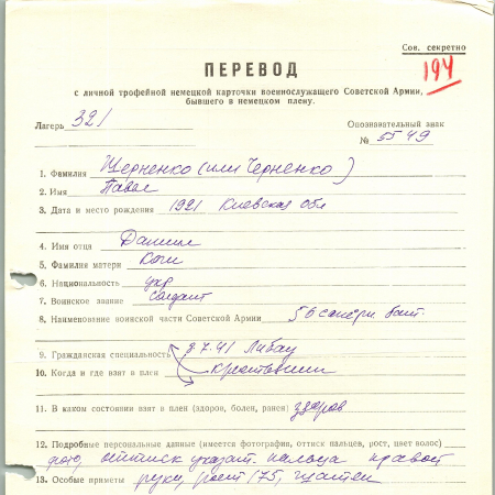 Военнопленные, трофейные карточки. Киевская обл.