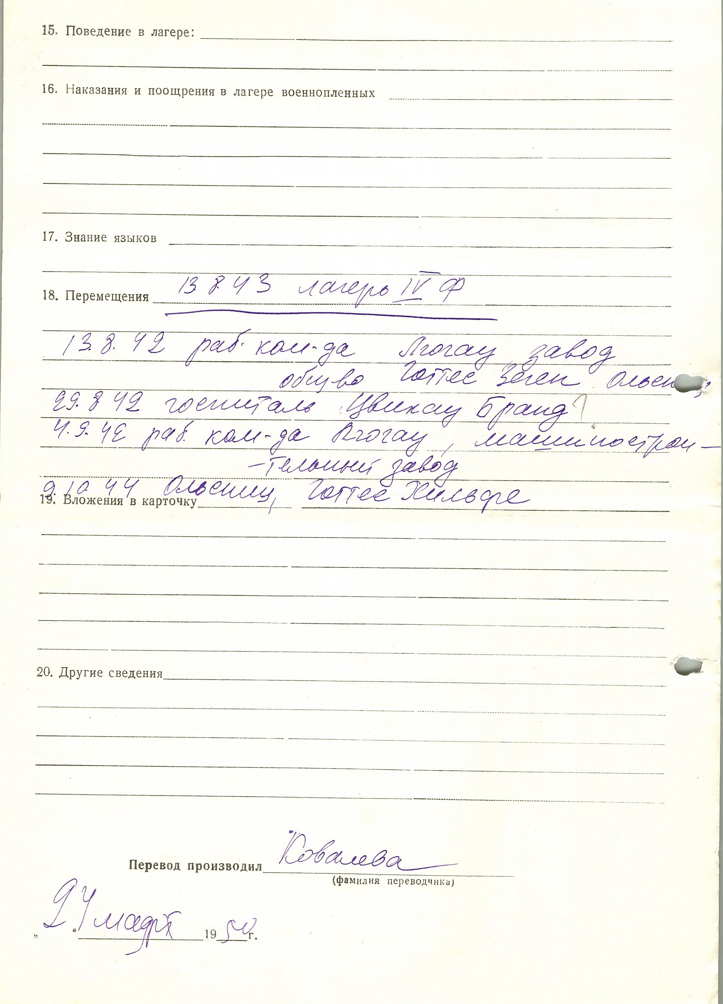 Военнопленные, трофейные карточки. Киевская обл.