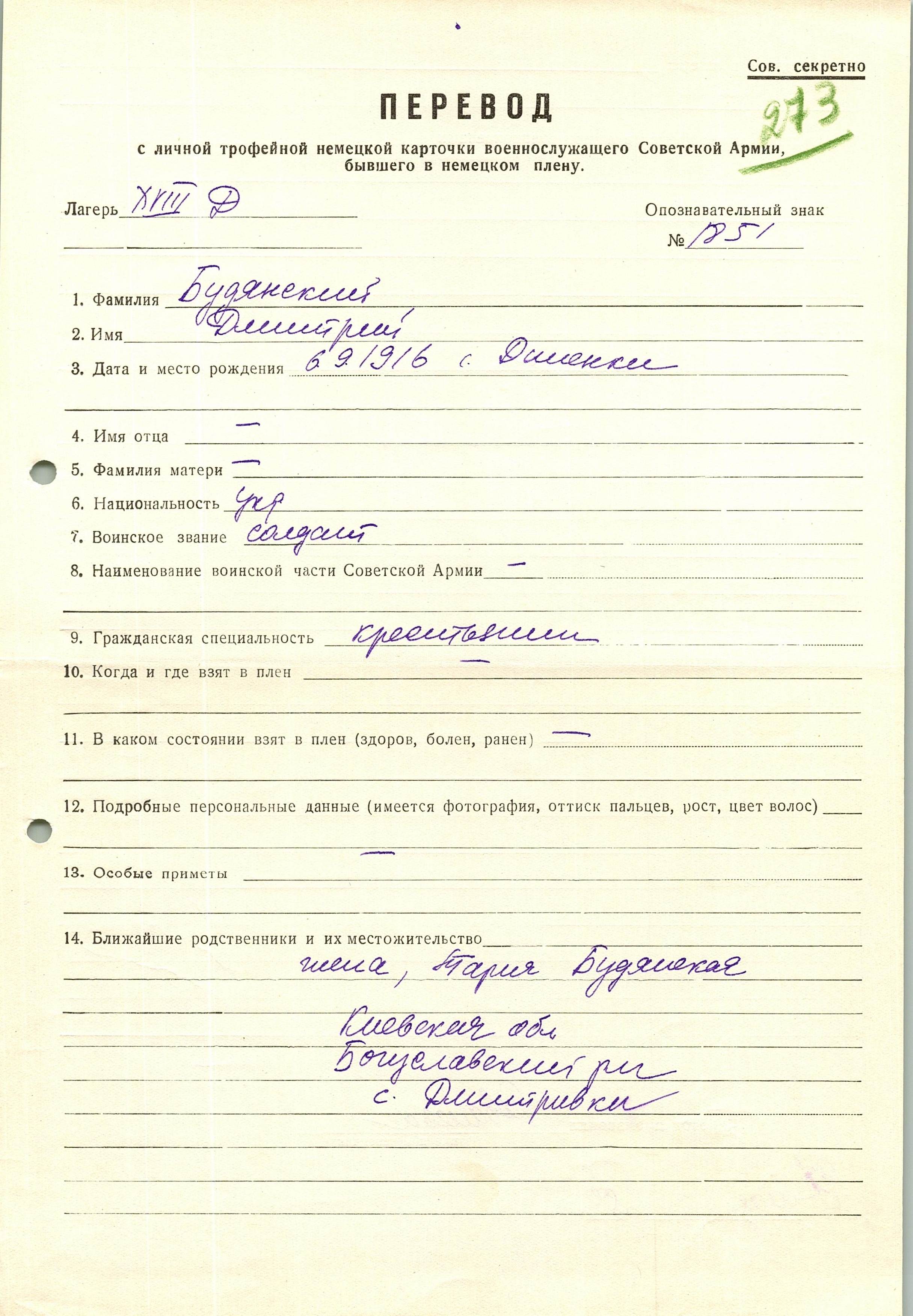Военнопленные, трофейные карточки. Киевская обл.