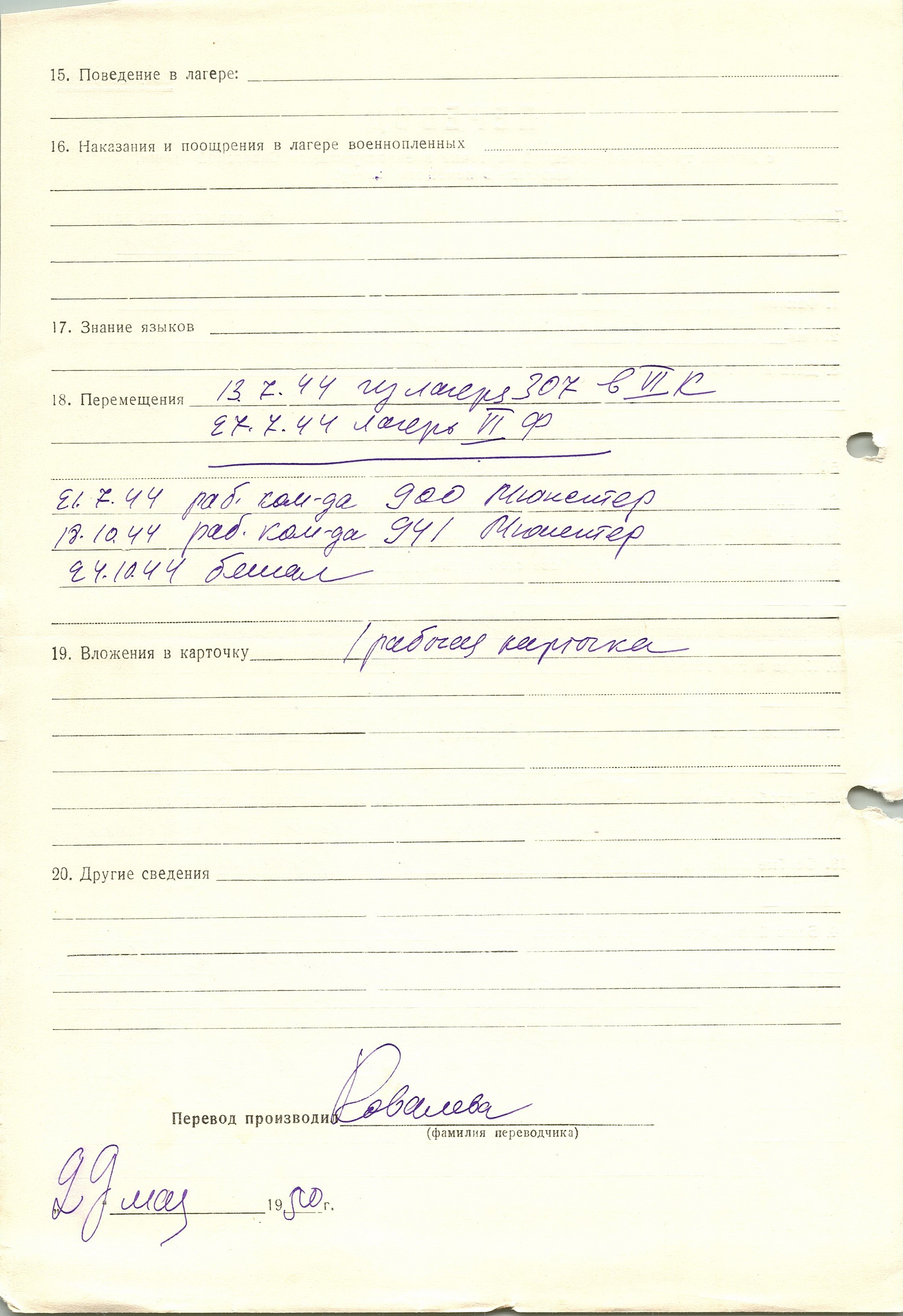 Военнопленные, трофейные карточки. Киевская обл.