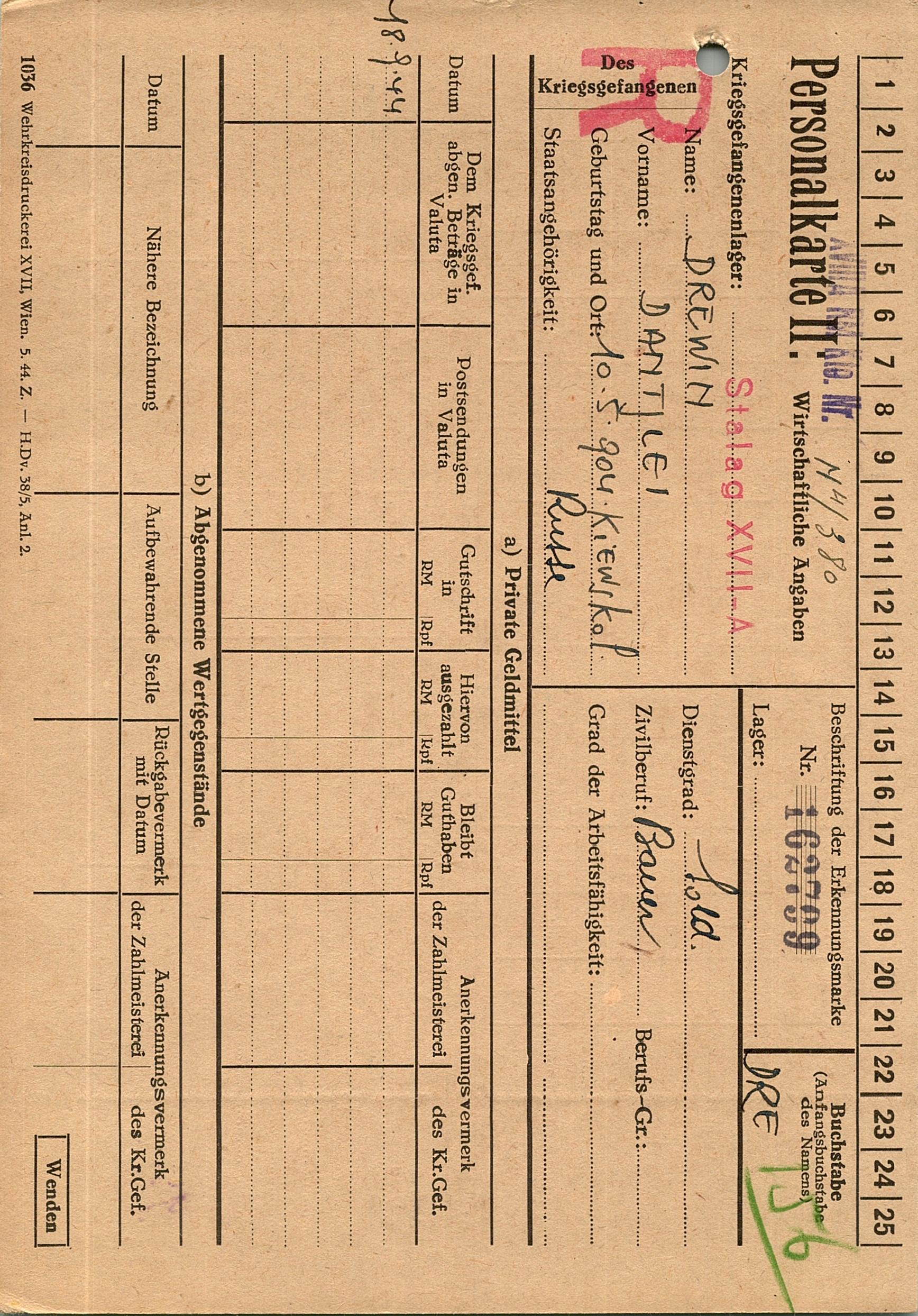 Военнопленные, трофейные карточки. Киевская обл.