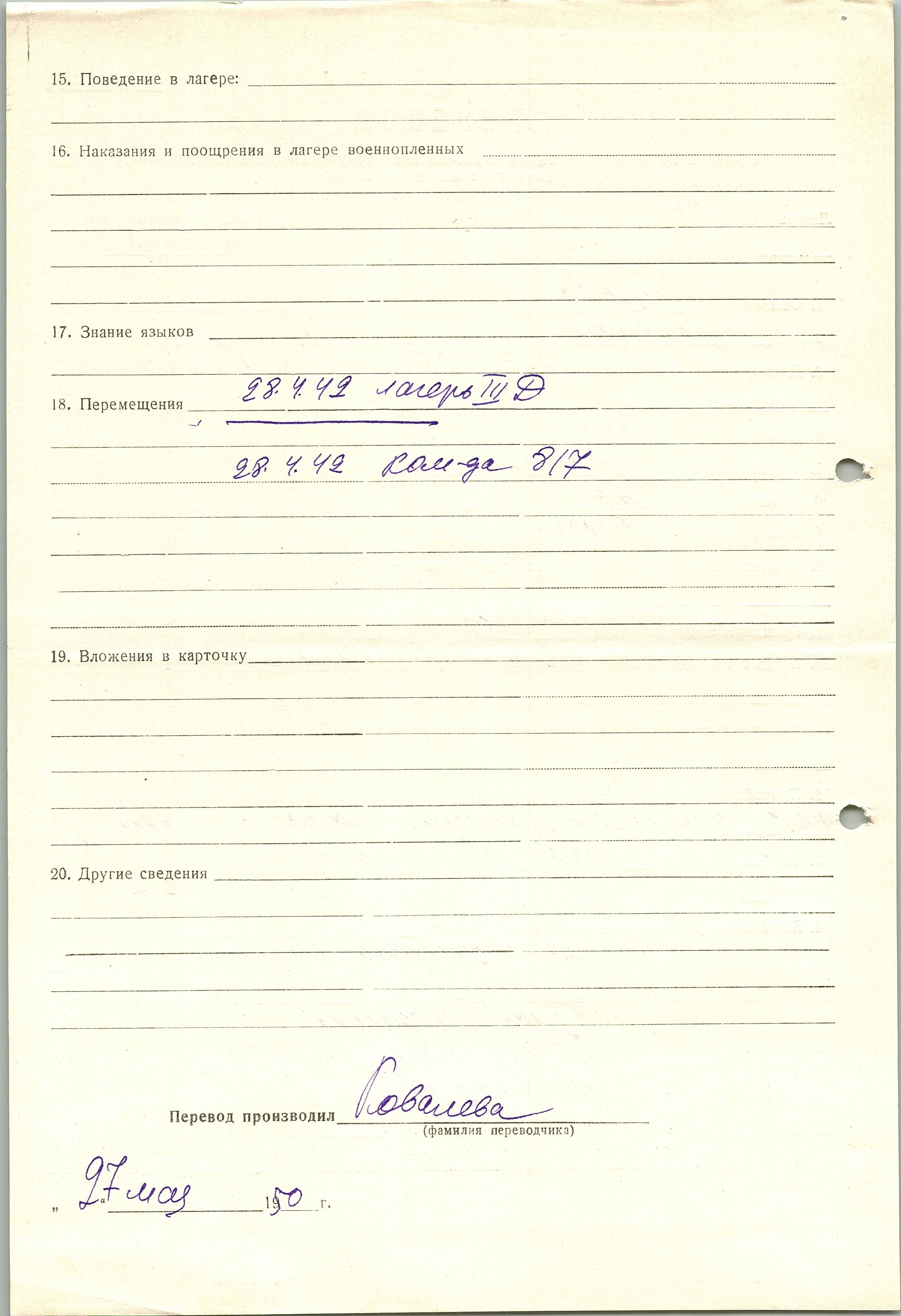 Военнопленные, трофейные карточки. Киевская обл.