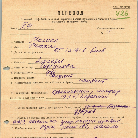 Военнопленные, трофейные карточки. Киевская обл.