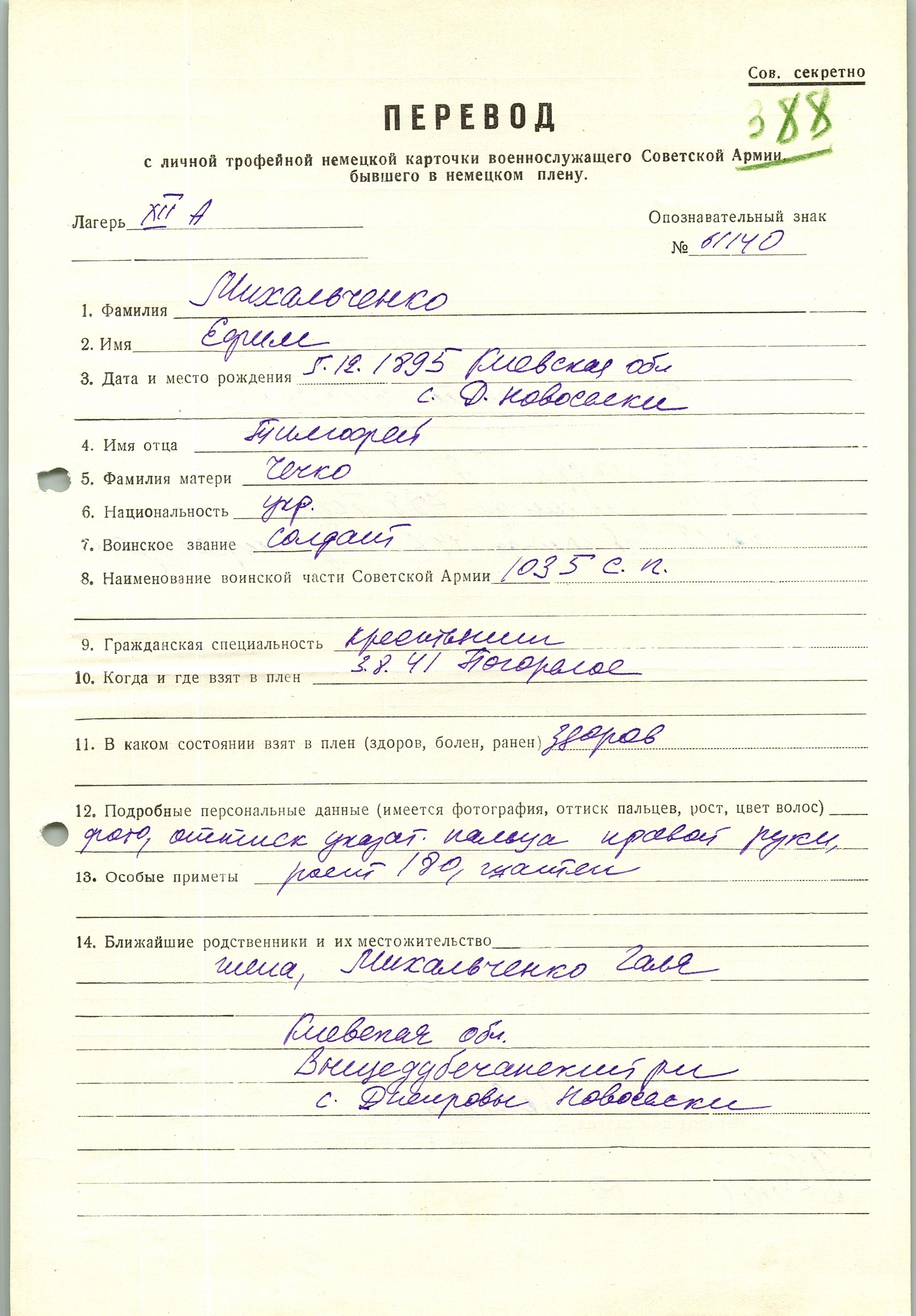 Военнопленные, трофейные карточки. Киевская обл.