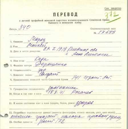 Военнопленные, трофейные карточки. Киевская обл.
