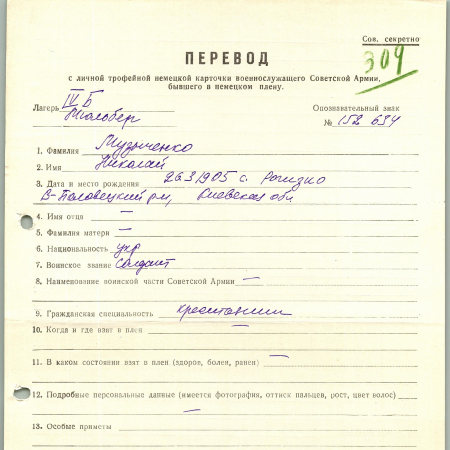 Военнопленные, трофейные карточки. Киевская обл.