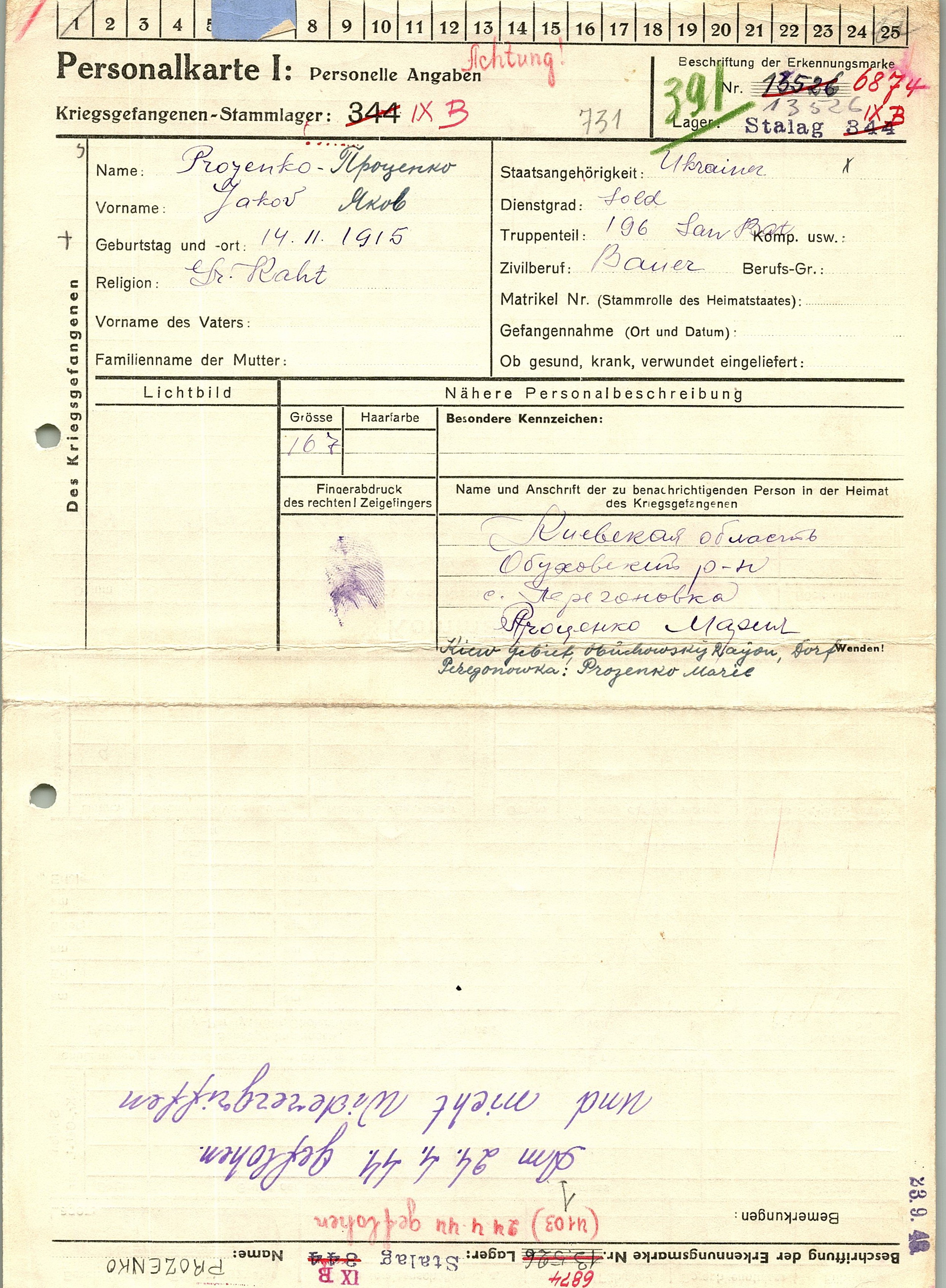 Военнопленные, трофейные карточки. Киевская обл.