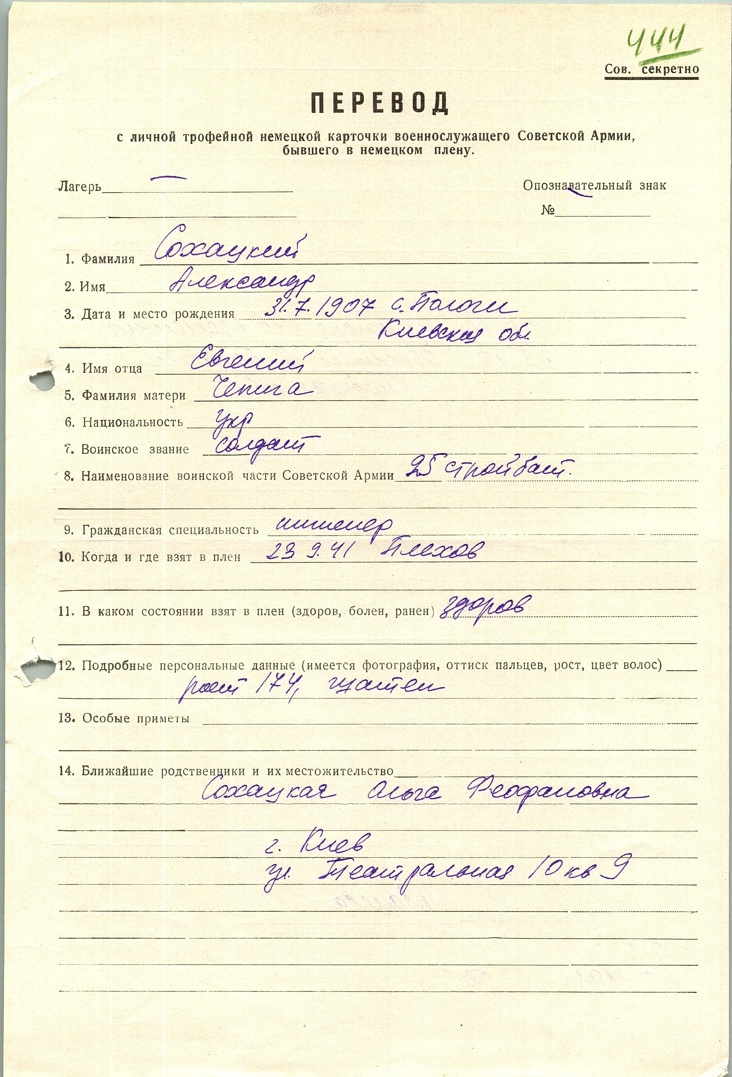 Военнопленные, трофейные карточки. Киевская обл.