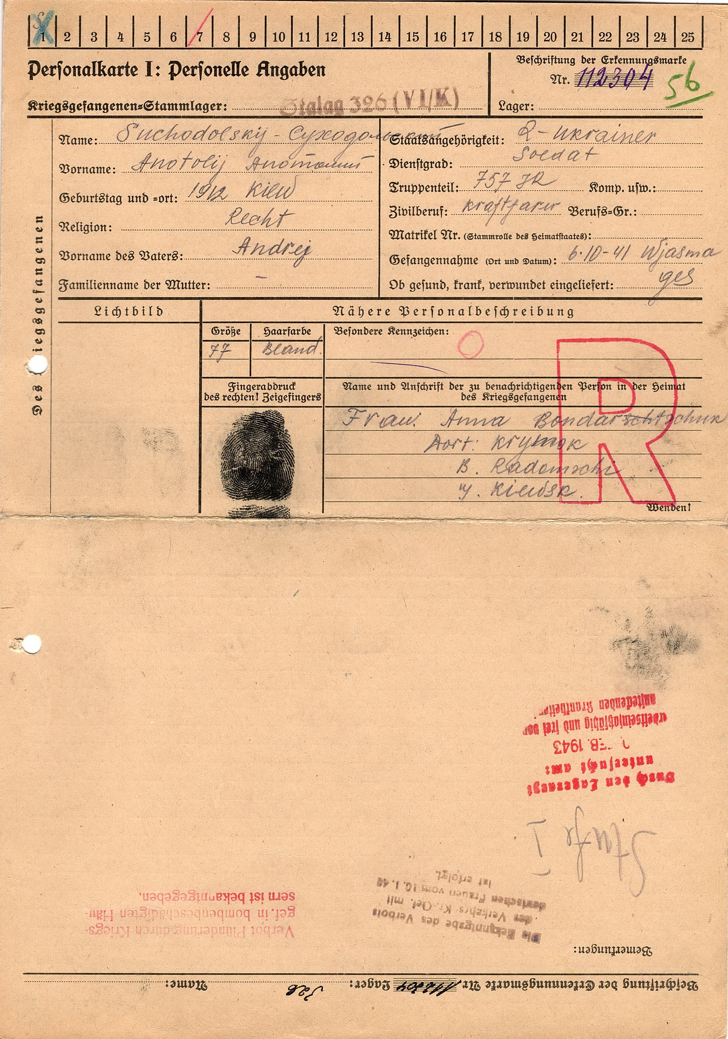 Военнопленные, трофейные карточки. Киевская обл.
