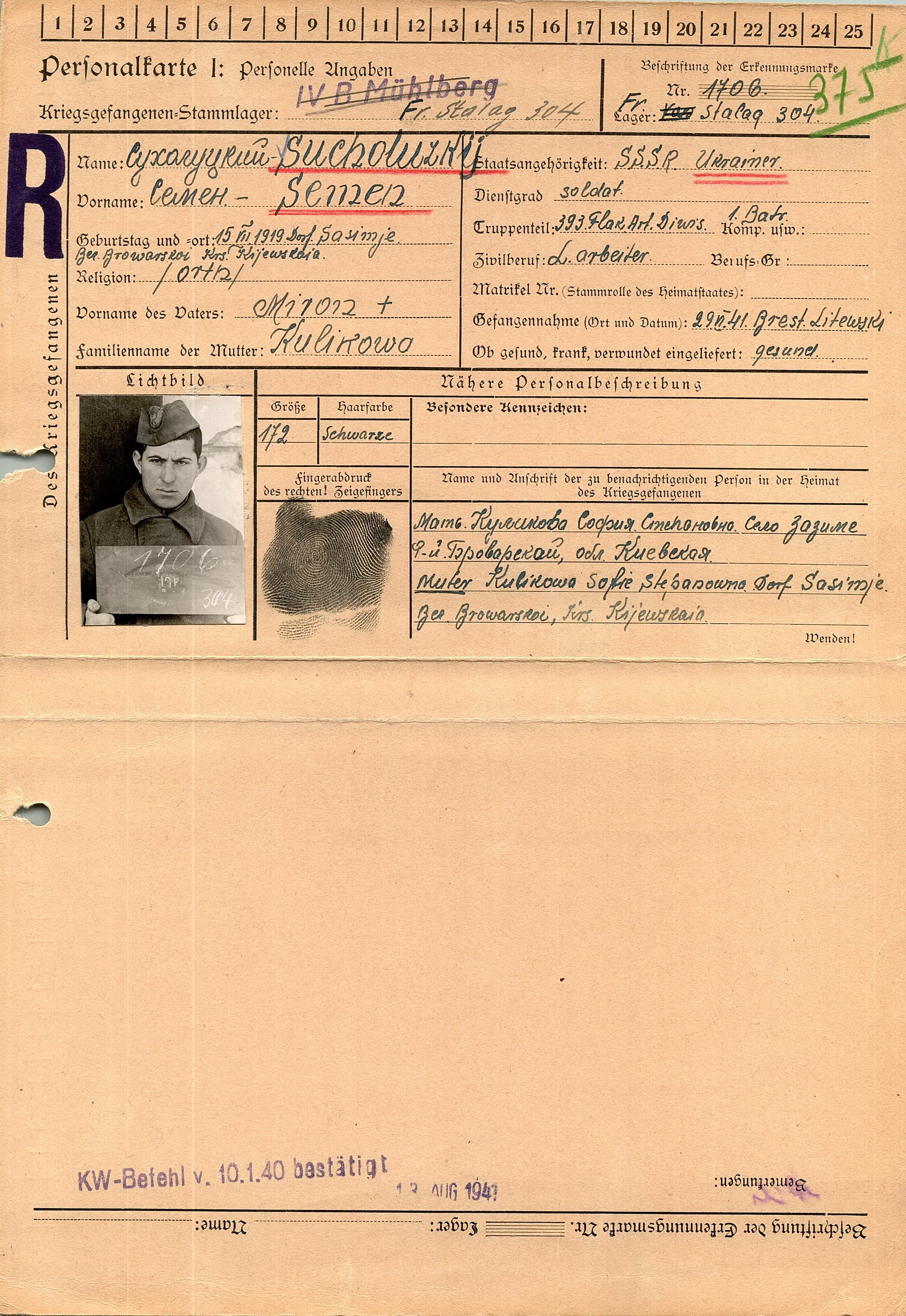 Военнопленные, трофейные карточки. Киевская обл.