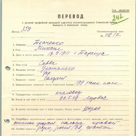 Военнопленные, трофейные карточки. Киевская обл.