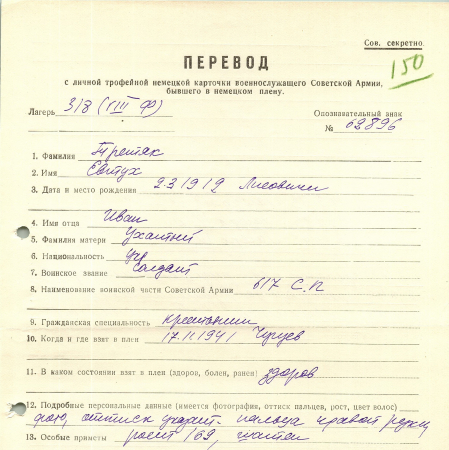 Военнопленные, трофейные карточки. Киевская обл.
