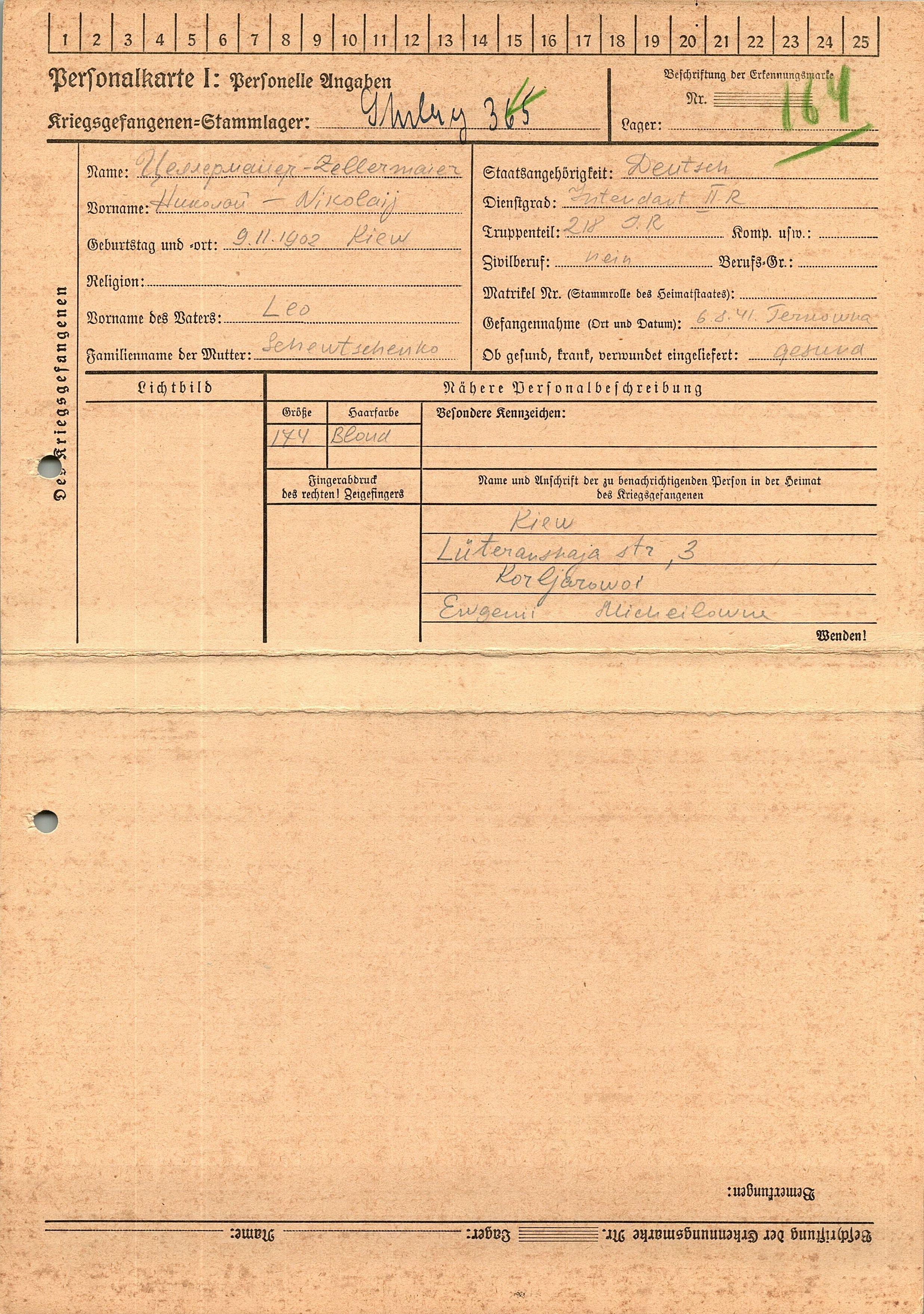 Военнопленные, трофейные карточки. Киевская обл.