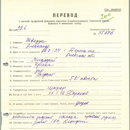 Военнопленные, трофейные карточки. Киевская обл.