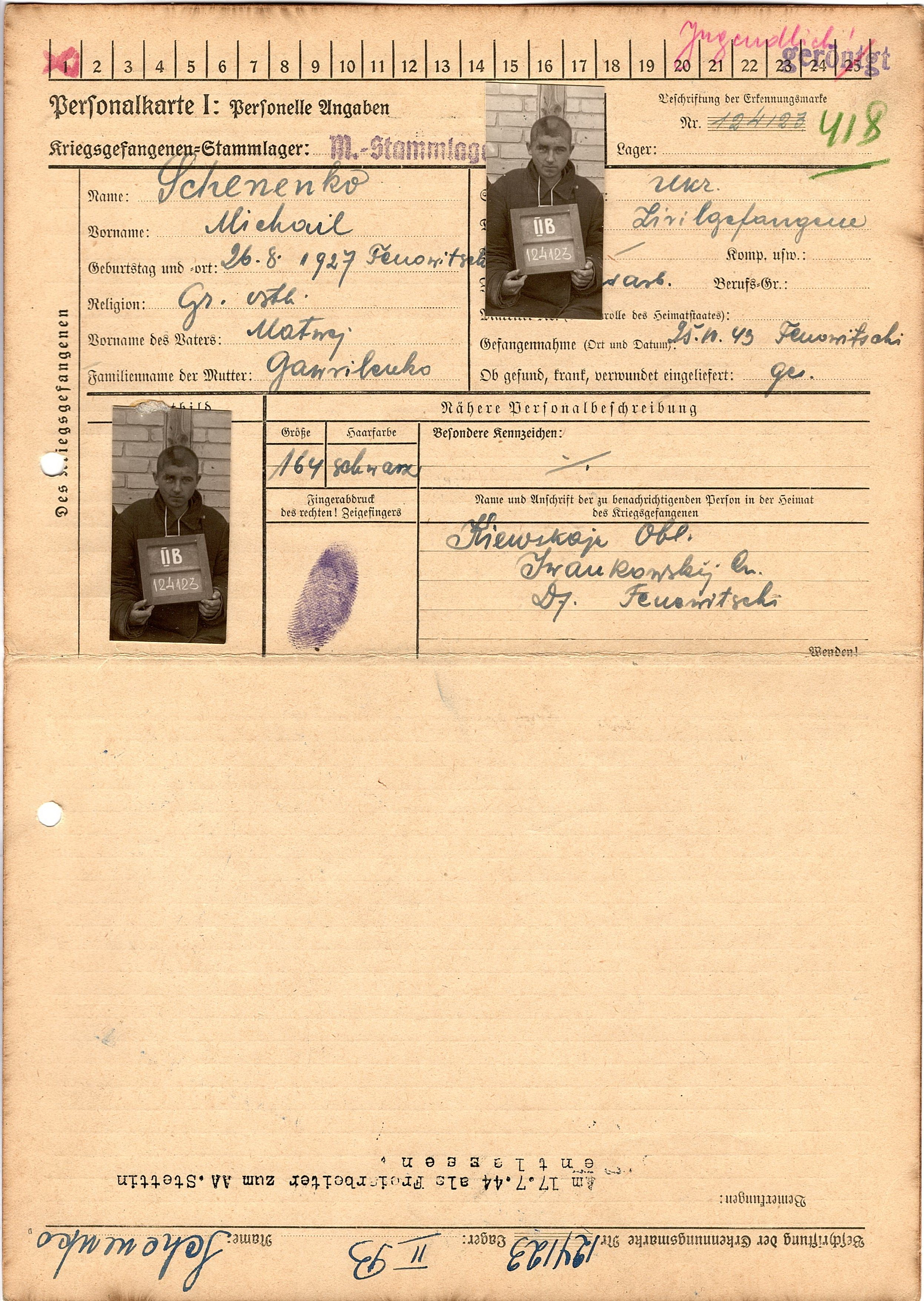 Военнопленные, трофейные карточки. Киевская обл.