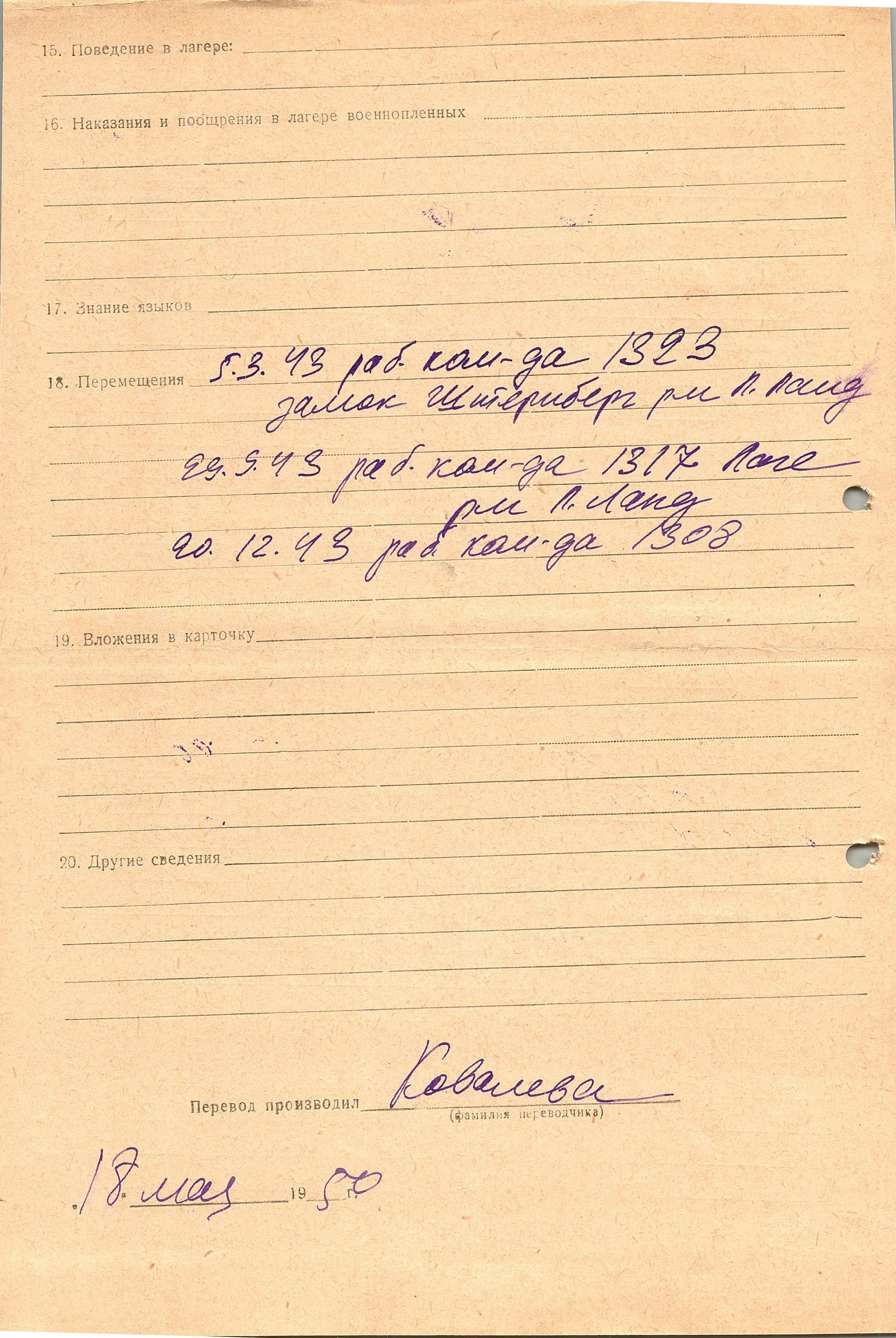 Военнопленные, трофейные карточки. Киевская обл.