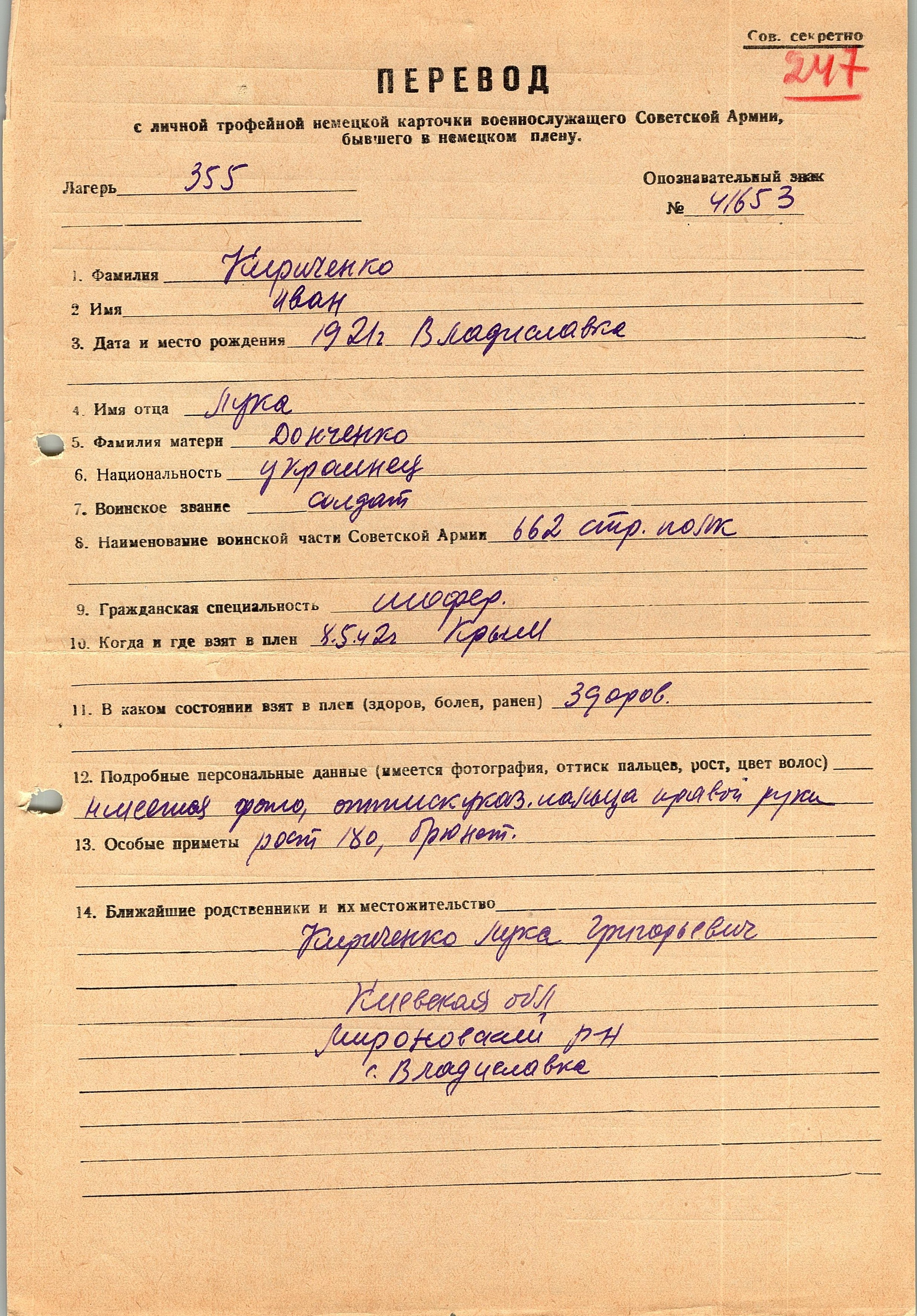 Военнопленные, трофейные карточки. Киевская обл.