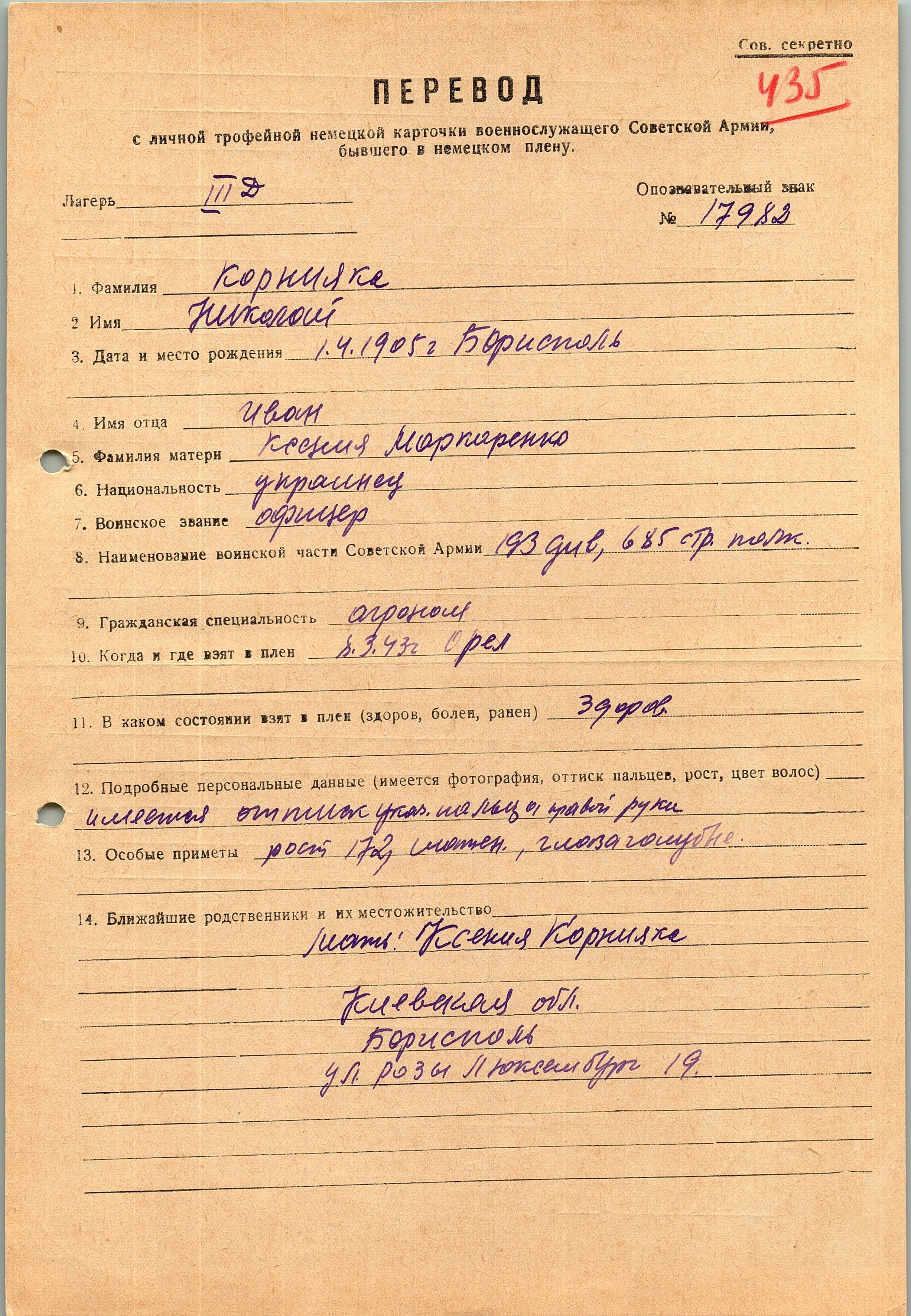 Военнопленные, трофейные карточки. Киевская обл.