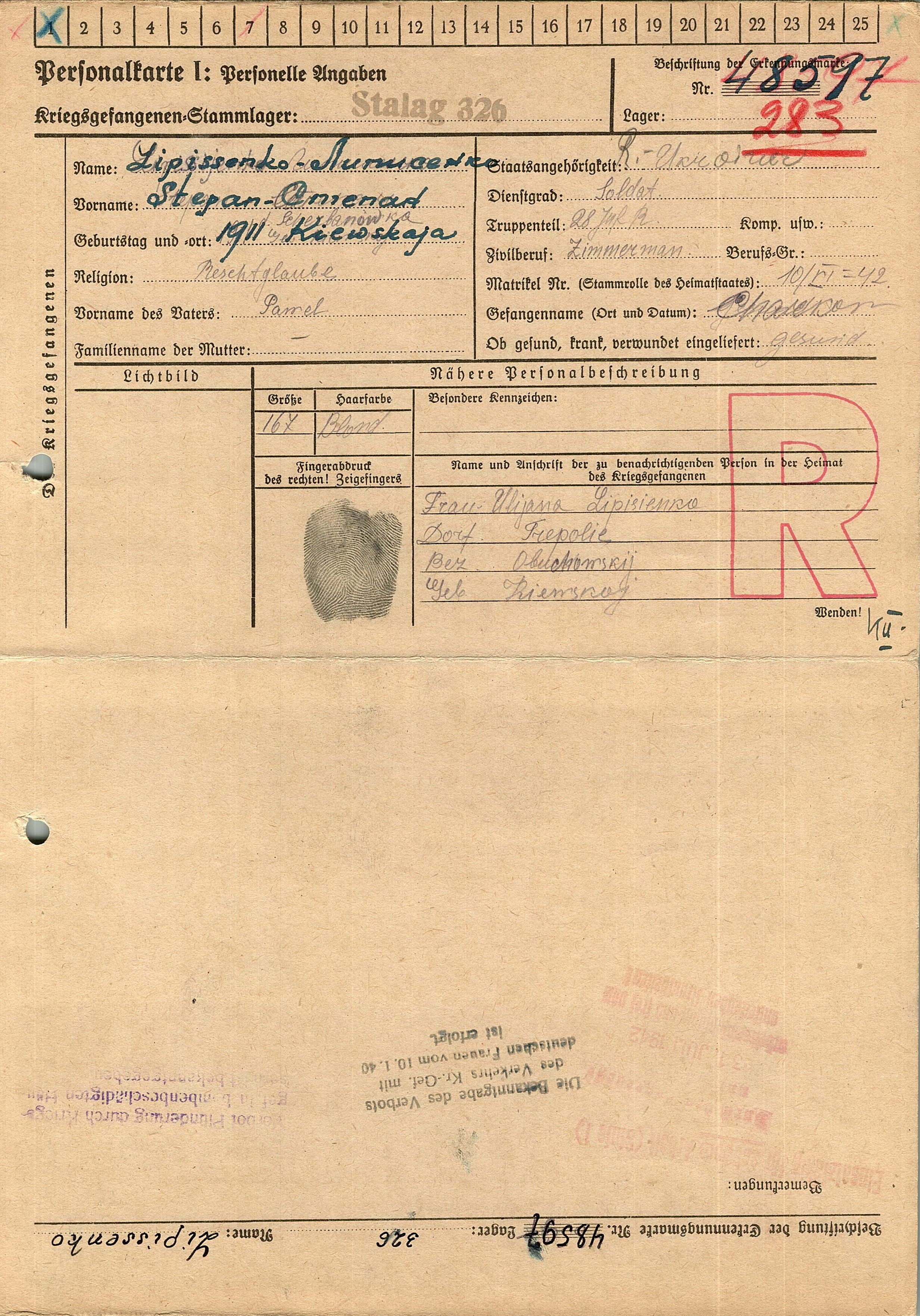 Военнопленные, трофейные карточки. Киевская обл.